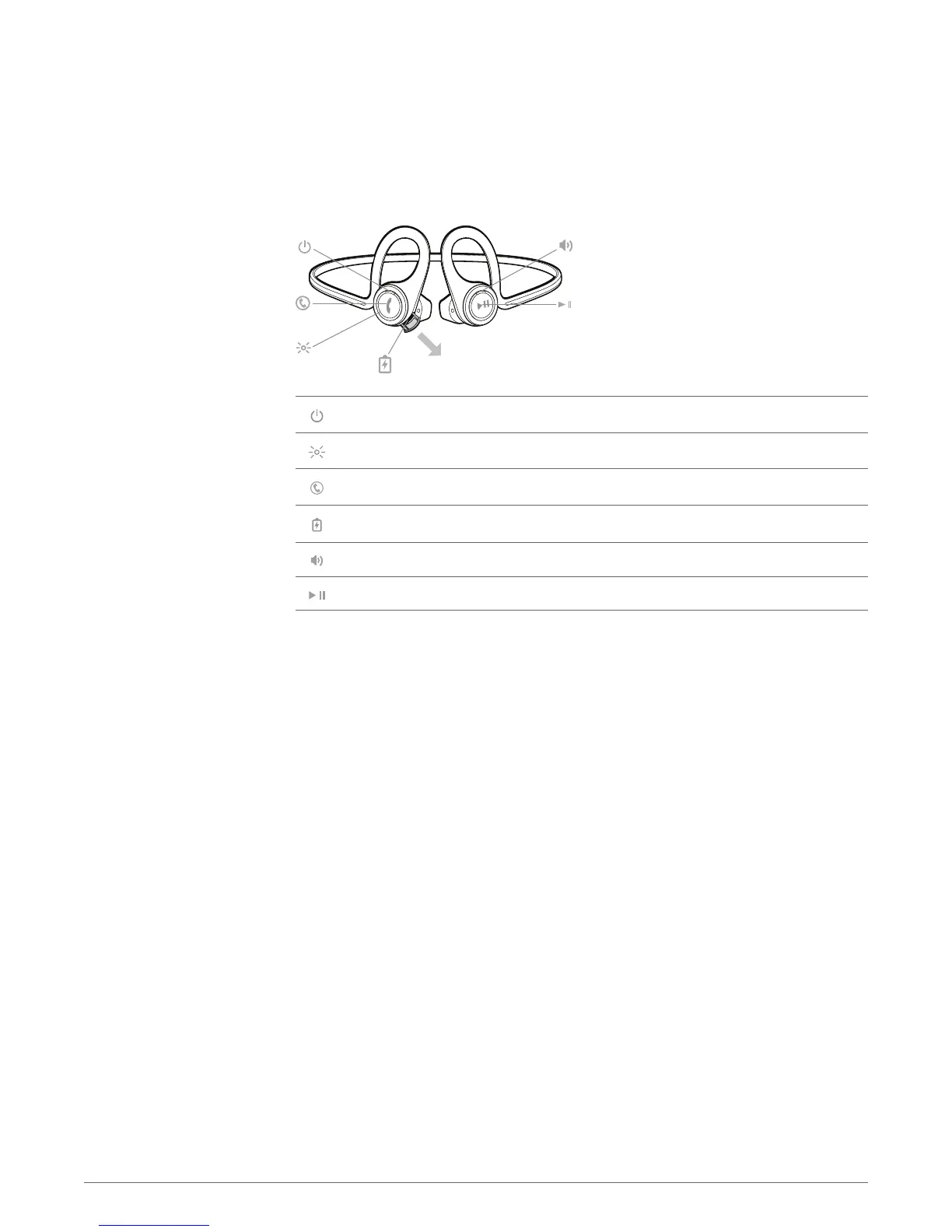Plantronics Backbeat FIT - Headset overview; Power button; Call button; Volume button