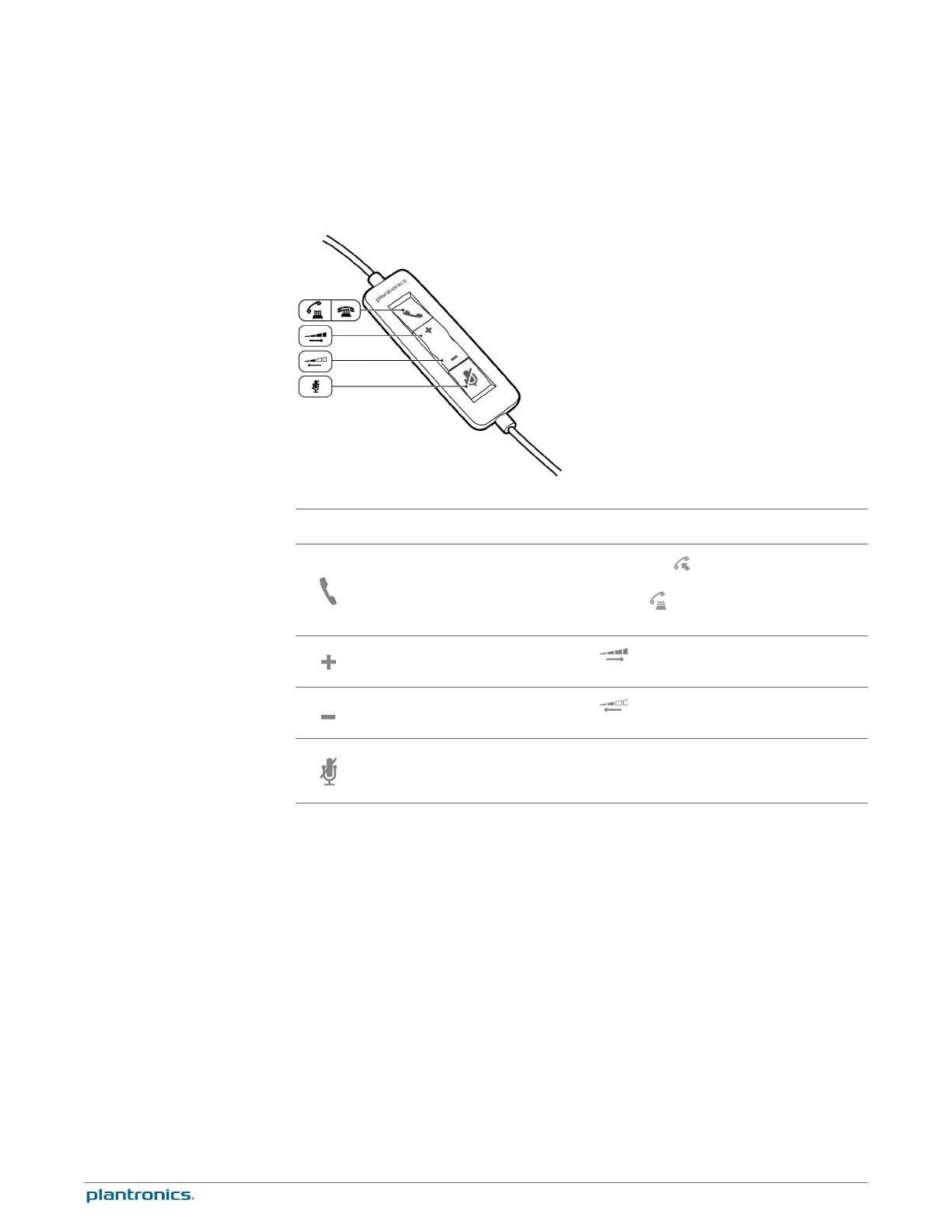 Plantronics Blackwire C325 - Headset Basics and Controls; Inline Control Icons and Functions