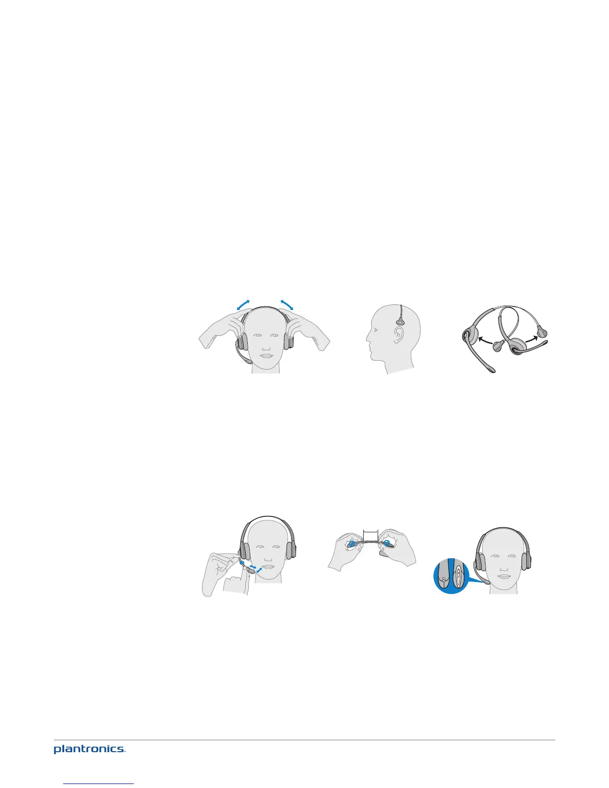 1 To adjust the headband, lengthen or shorten the band until it fits comfortably. The clickstop
