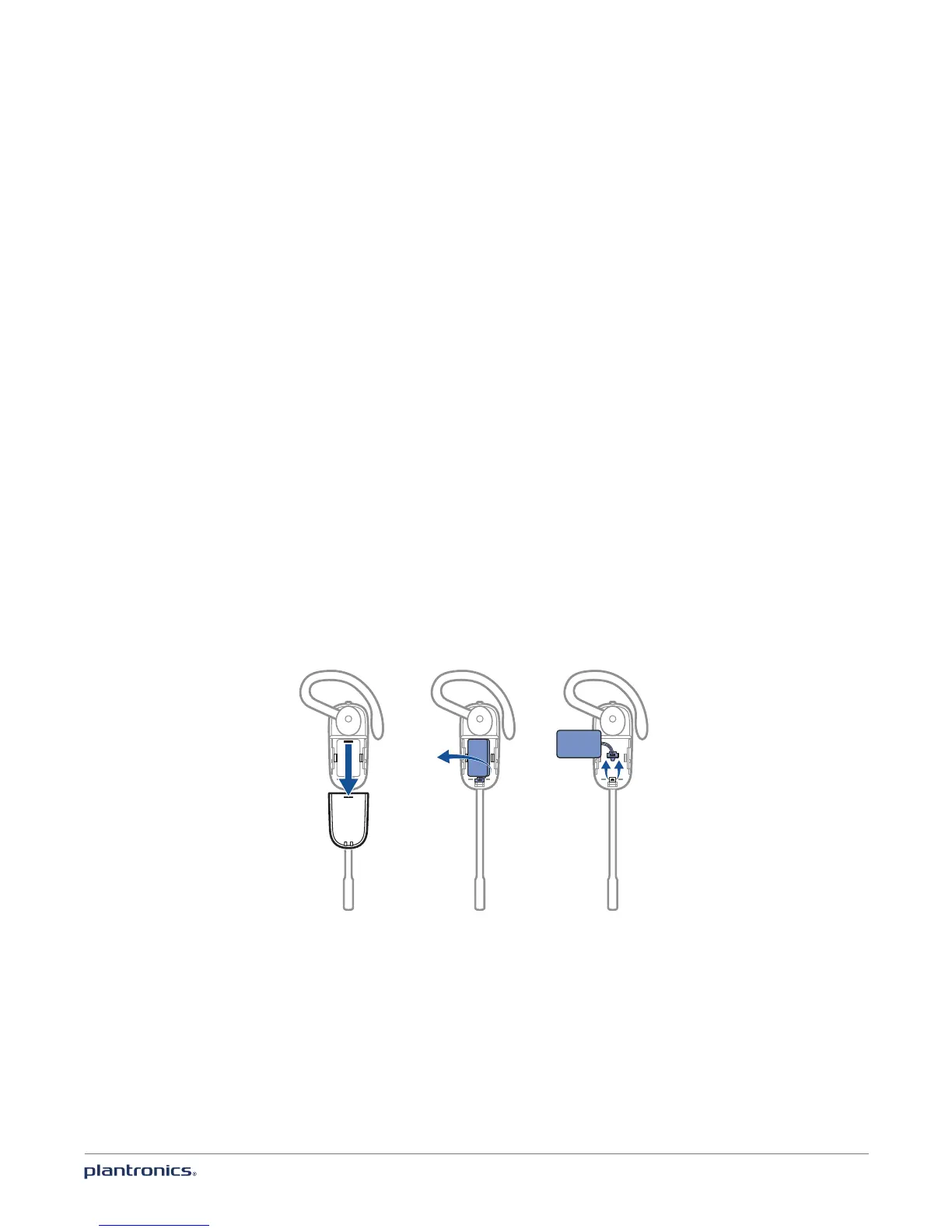 1 Slide battery cover down and remove from headset.