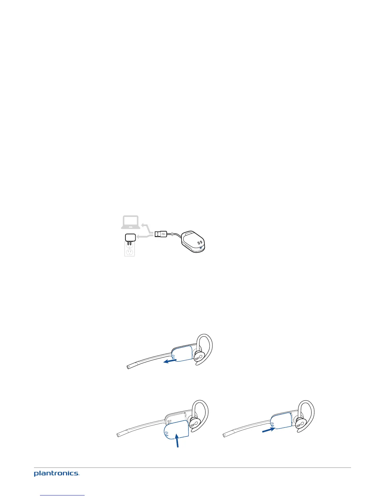 2 Remove the charged battery from the second battery charger and slide it onto the headset
