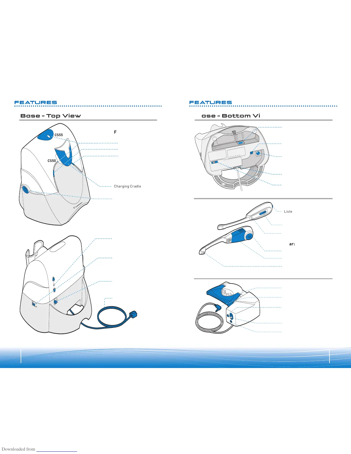 Plantronics CS55 - Features Overview; Base - Top View; Base - Bottom View; Headset Components