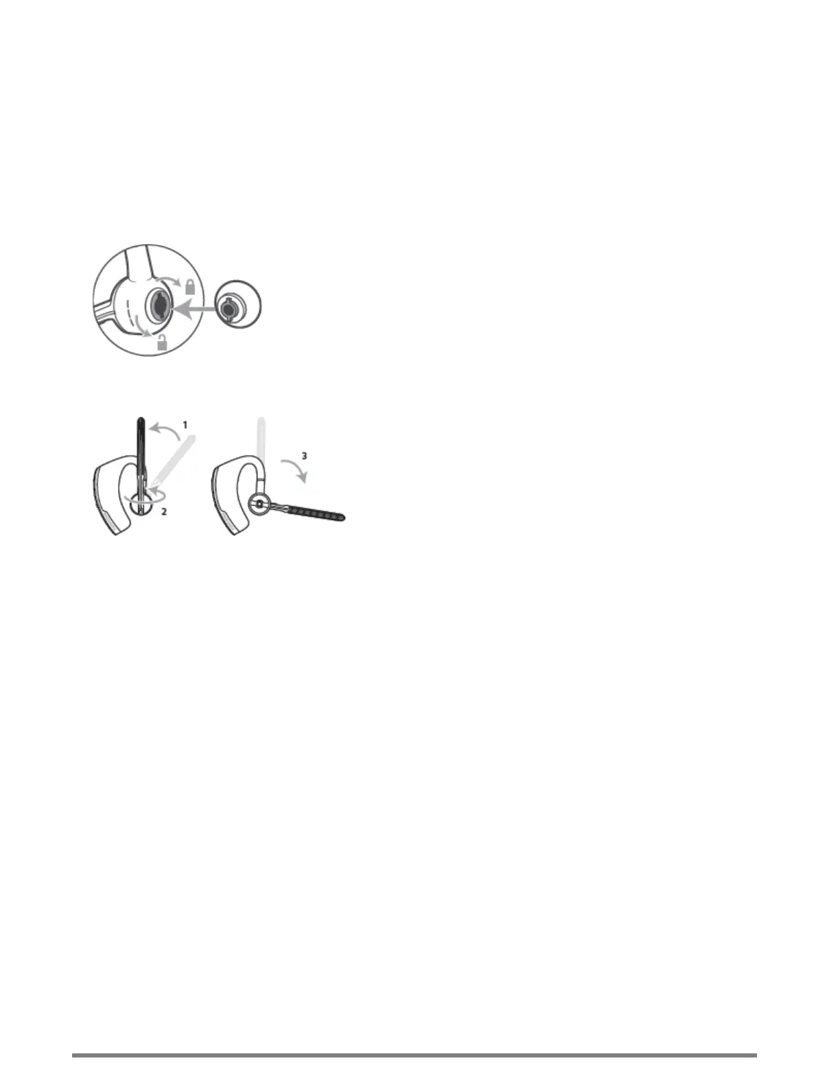 To wear the headset on your other ear, rotate the boom upwards then twist it around so the ear tip is on the