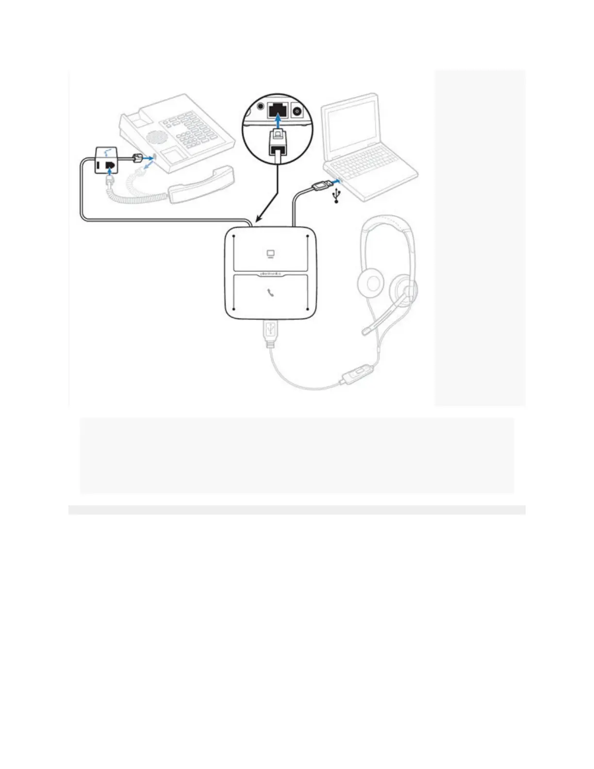 6. Plug your Plantronics supported USB corded headset or wireless USB headset adapter to the MDA200
