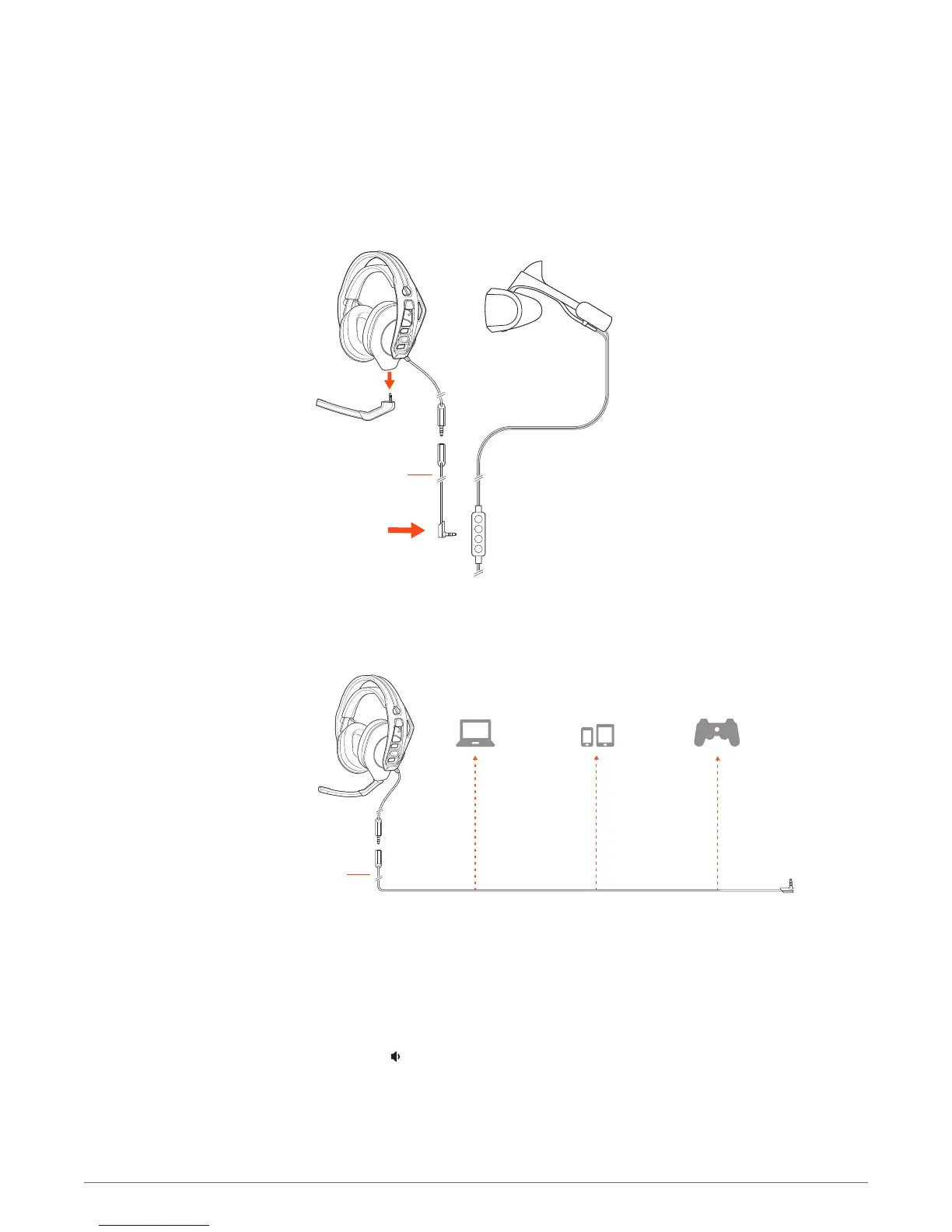 Attach the headset jack to the 1.2 m cord and plug the cord's 3.5 mm connector into the device.