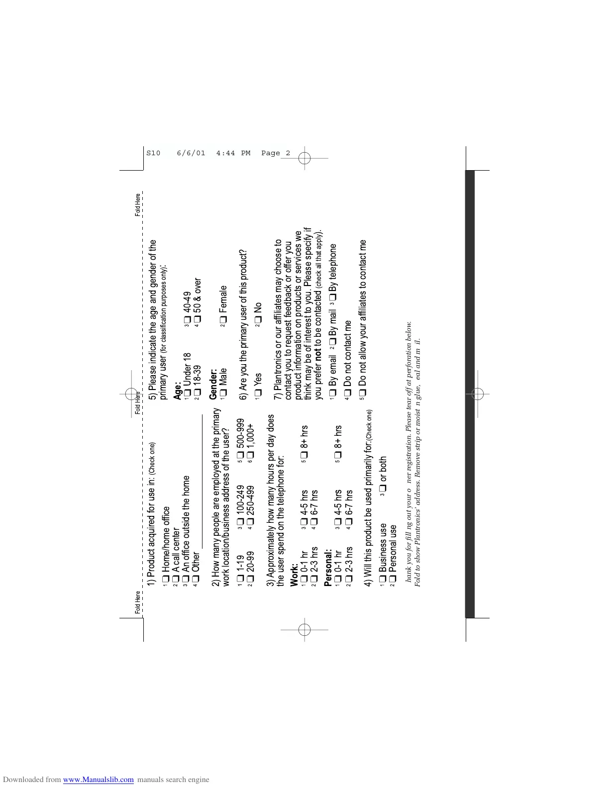 Fold to show Plantronics’ address. Remove strip or moisten glue, seal and mail.