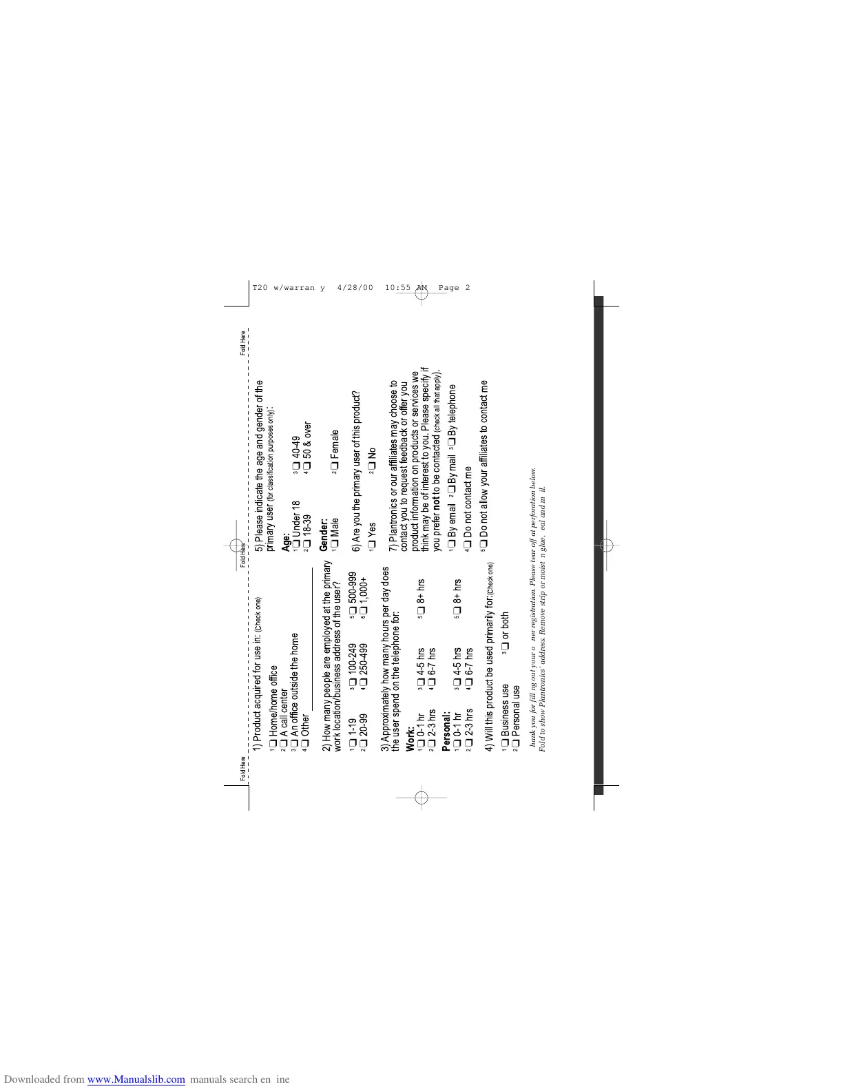 Fold to show Plantronics’ address. Remove strip or moisten glue, seal and mail.