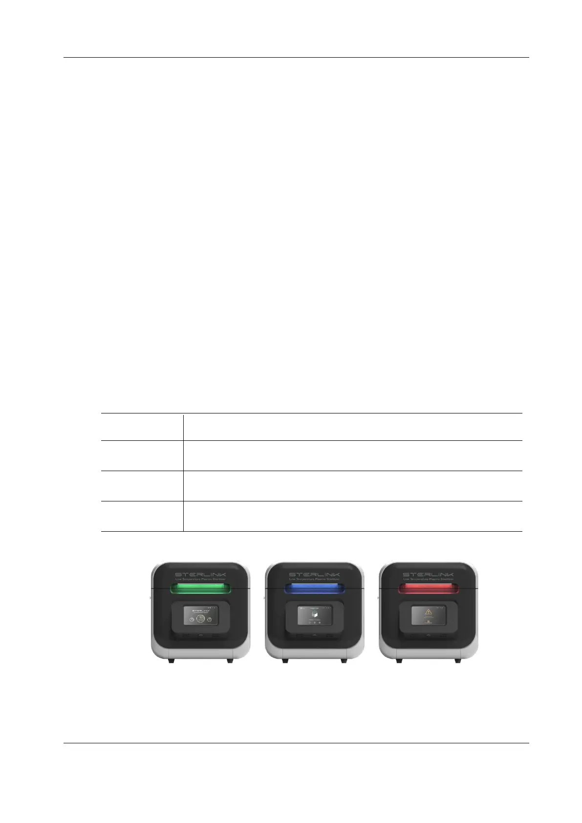 cycle. The system can display self-status with LED light of green, blue, and red at the following