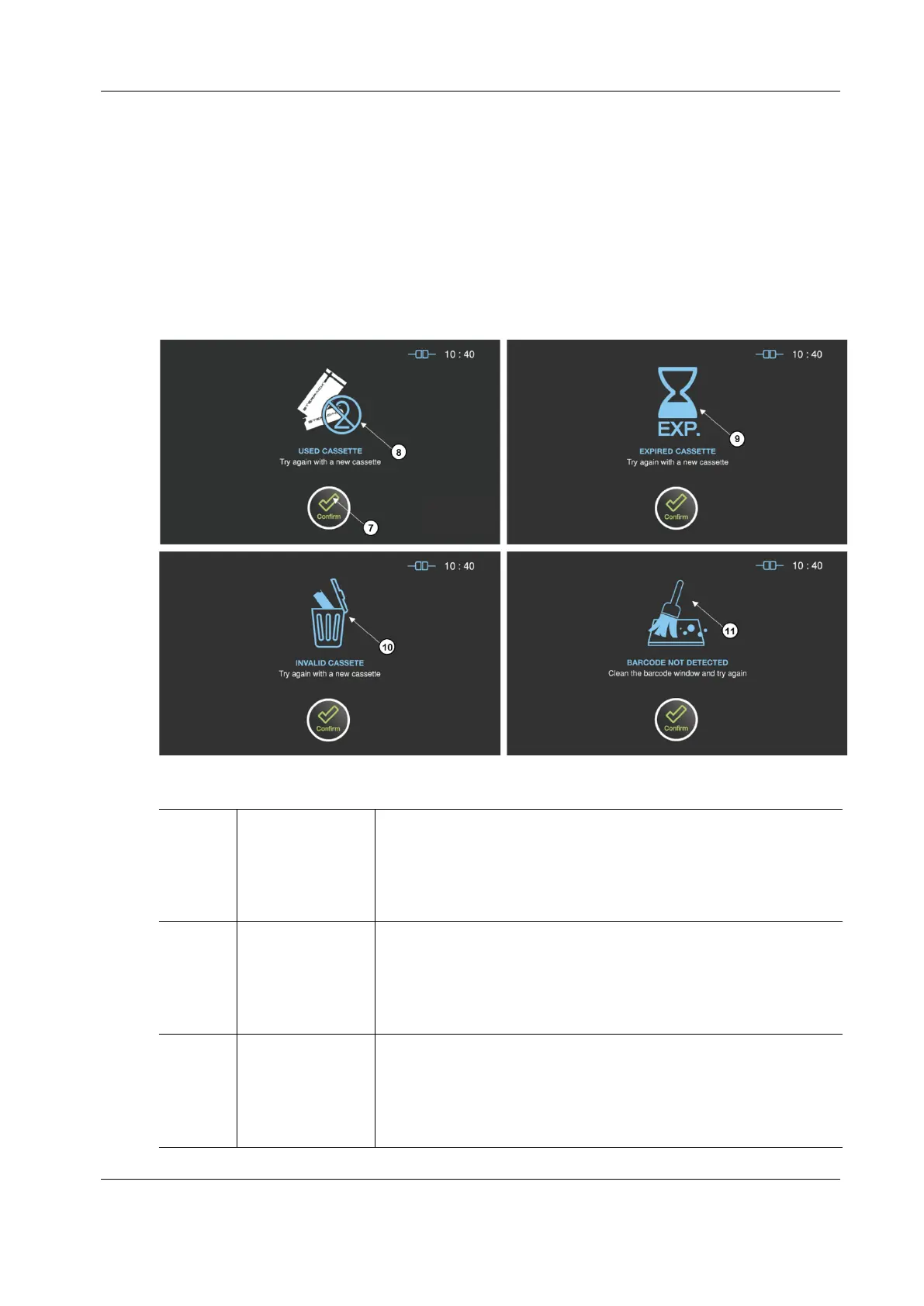 Figure 9.4 GUIs for the errors related with the sterilant cassettes