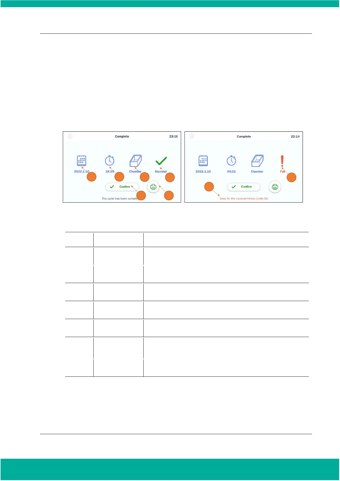 Fig. 7.1 Screens for cycle report; succeed (left) and fail (right)