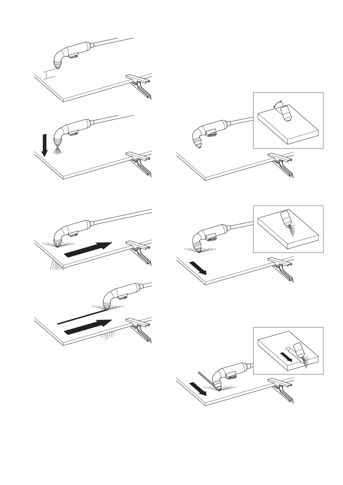 about 45° to the workpiece, with the torch shield about 1,5 mm