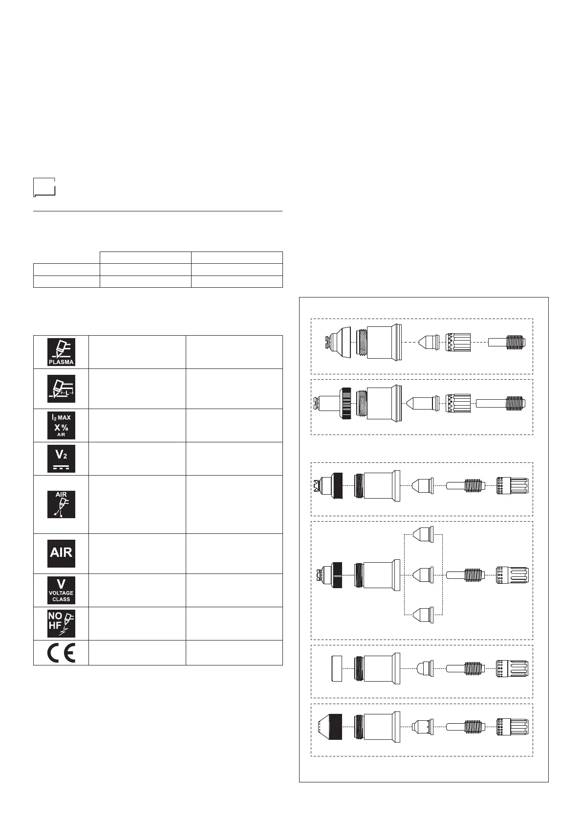 with maximum cutting currents of 45 A (only for SK 125 torch).