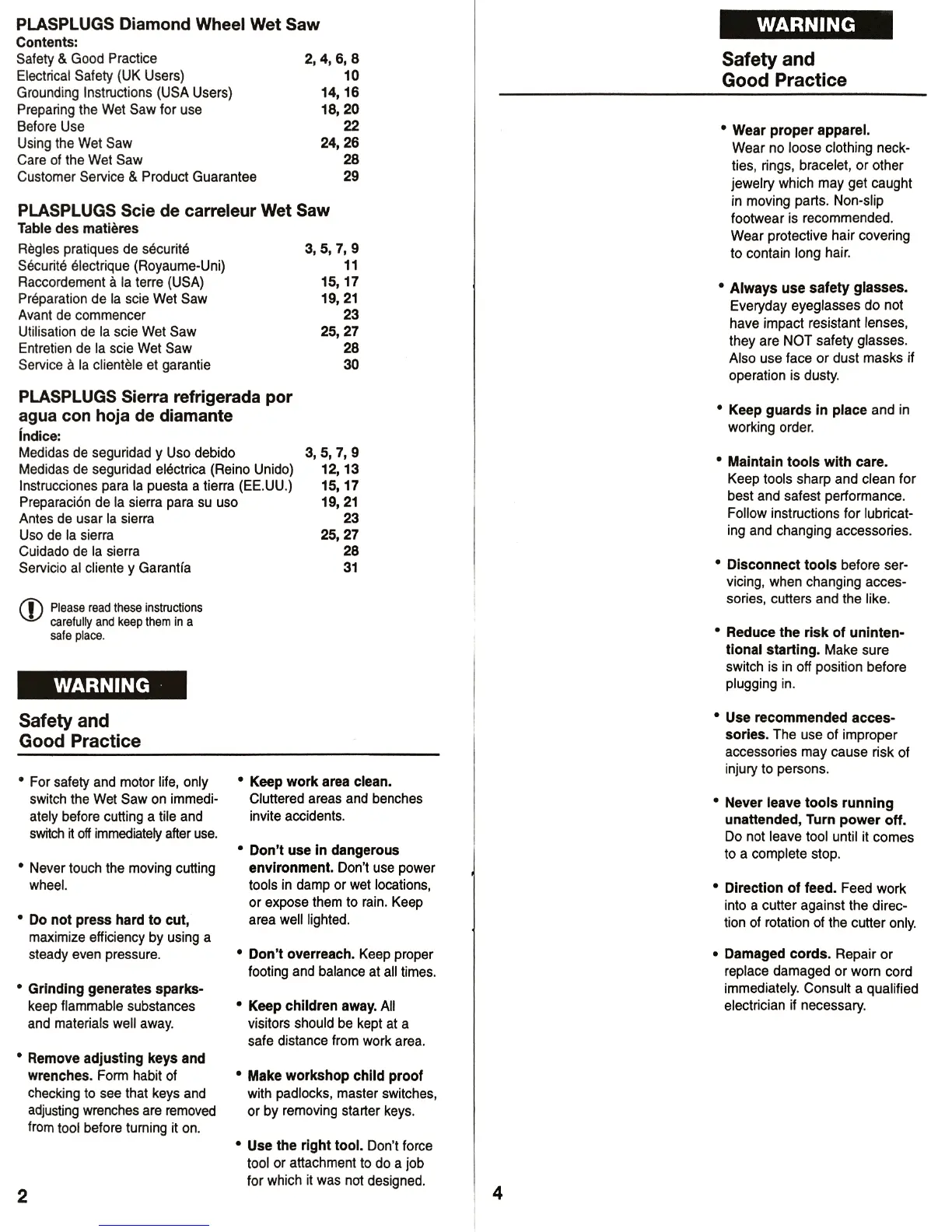 Plasplugs DWW101 - Safety and Good Practice
