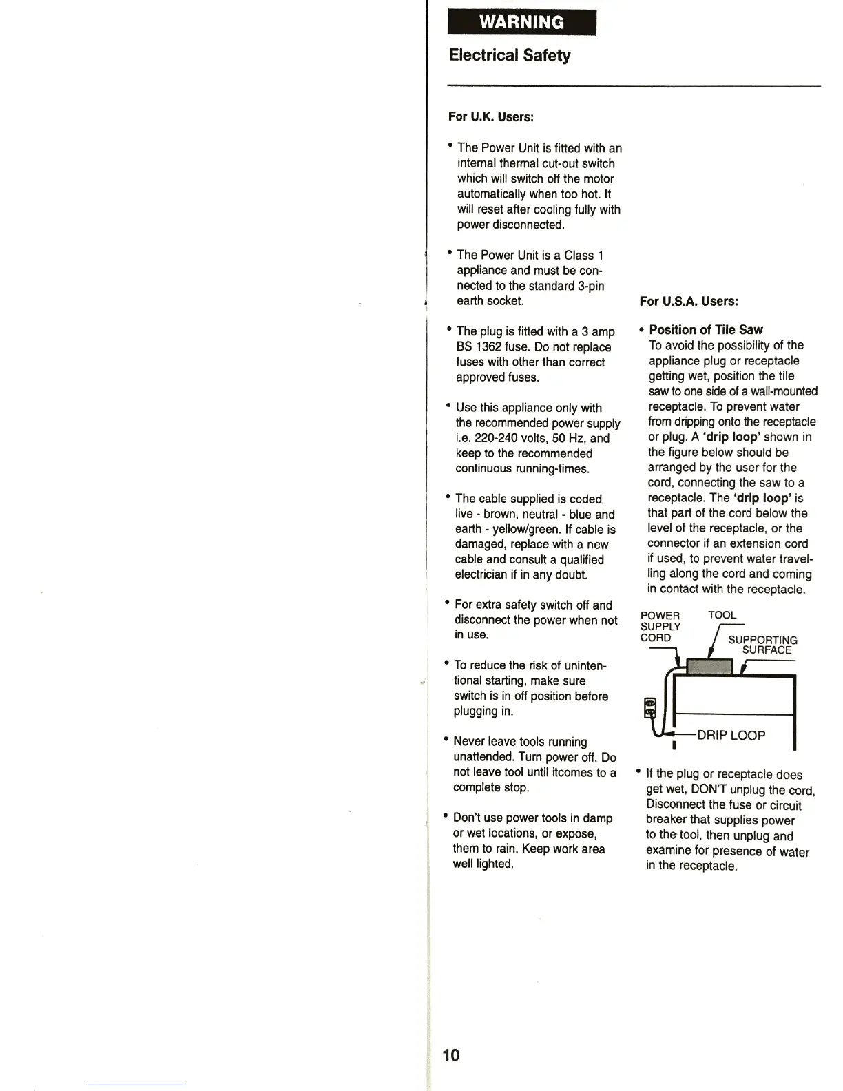 Plasplugs DWW101 - Electrical Safety; For U.K. Users; For U.S.A. Users