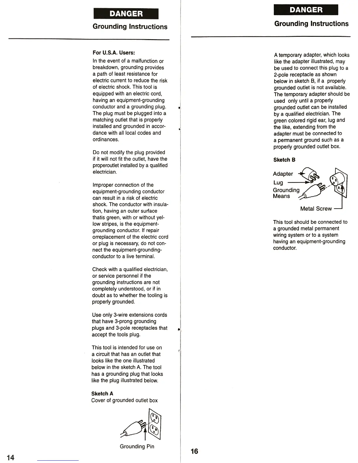 Plasplugs DWW101 - Grounding Instructions; For U.S.A. Users