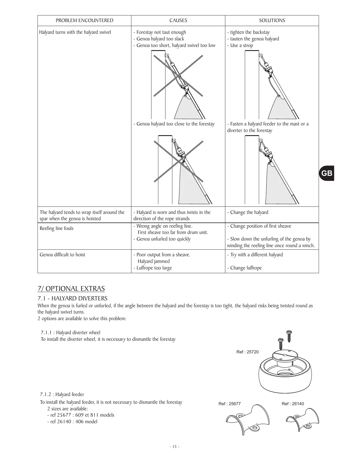 When the genoa is furled or unfurled, if the angle between the halyard and the forestay is too tight, the halyard risks being twisted round as