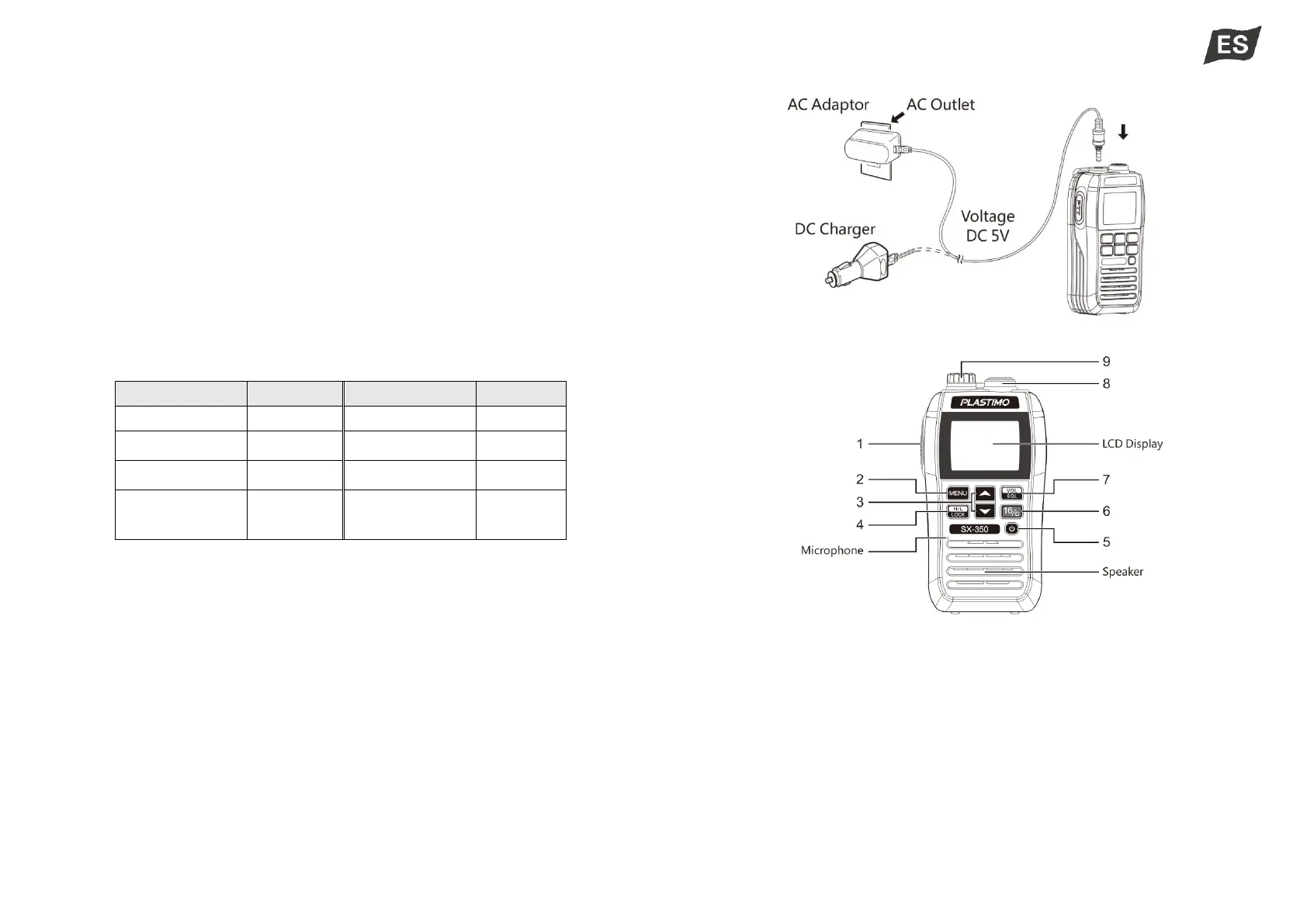 ·Para cargar la radio, utilice el adaptador de CA o el cargador de CC suministrado.
