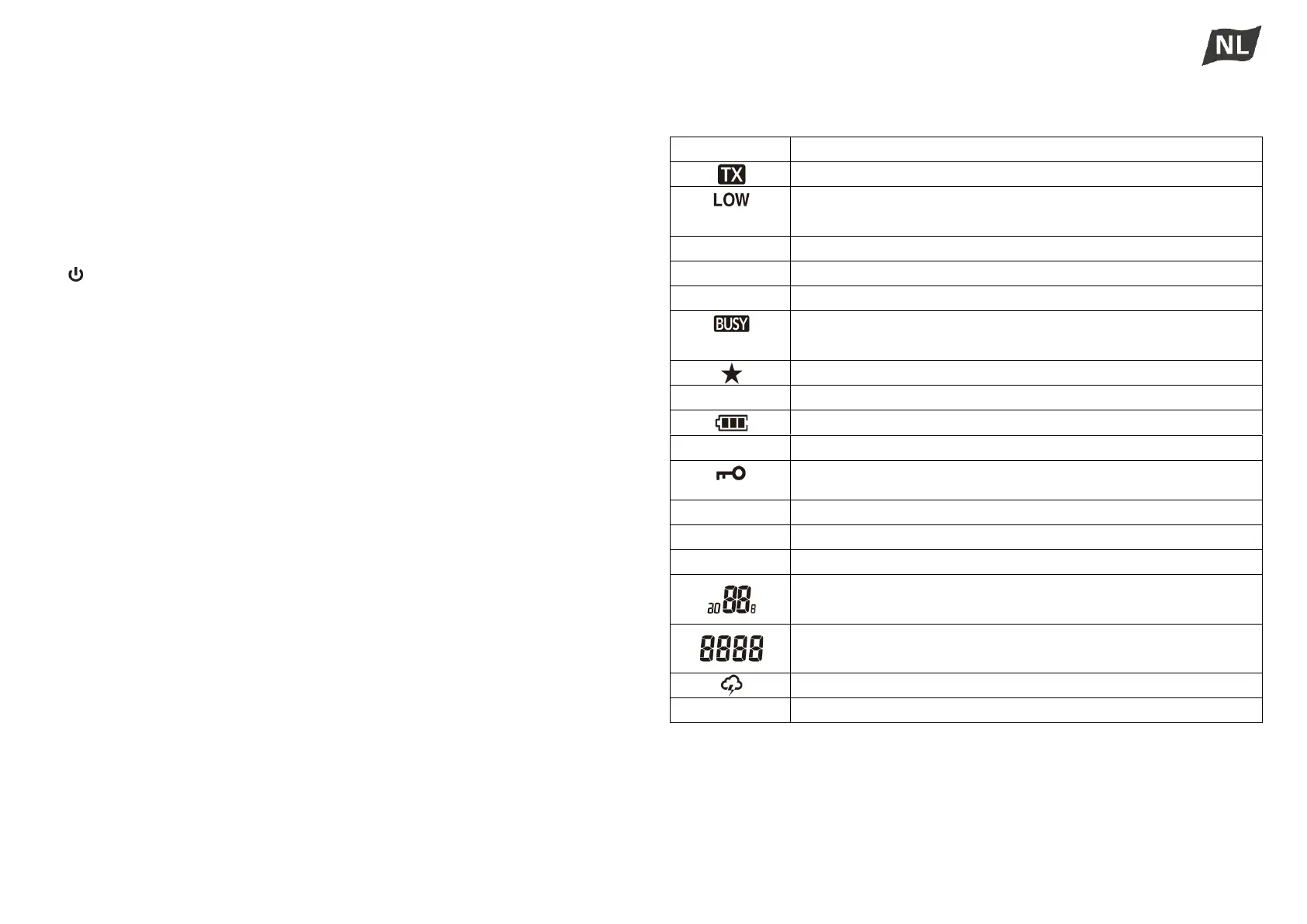 ·Wanneer het oproepkanaal geselecteerd is, houdt u deze toets 3 seconden vast om de