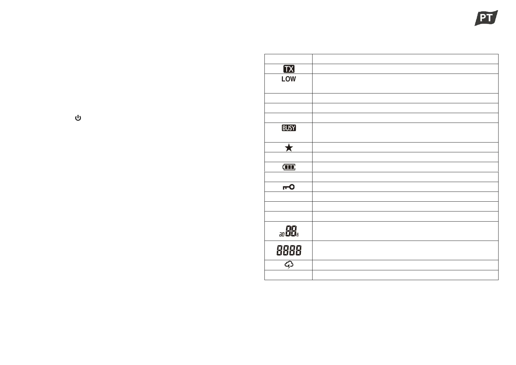 Mantenha esta tecla premida durante 1 segundo para ligar ou desligar o rádio.