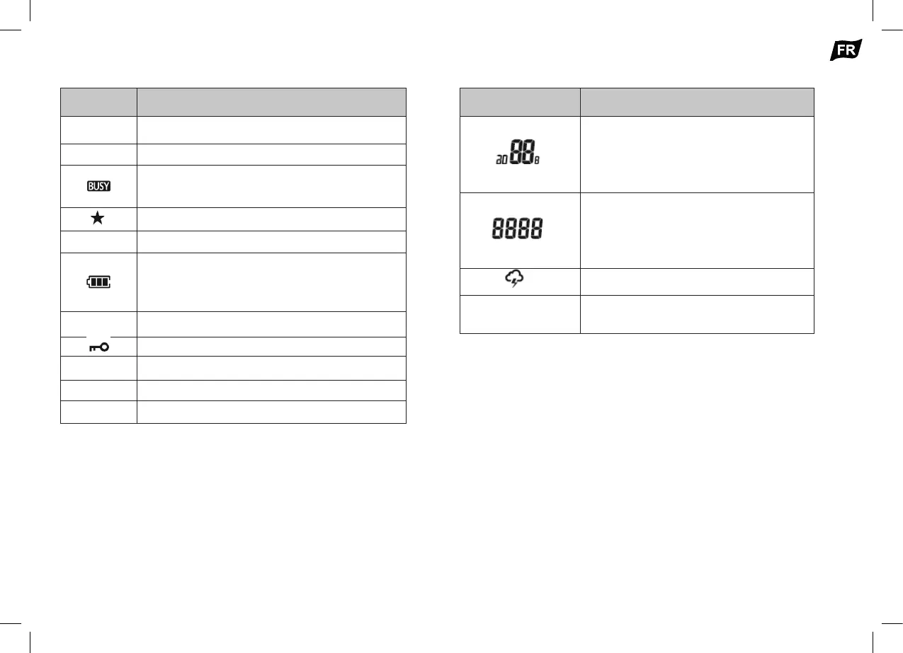 L’affichage LCD dispose de plusieurs symboles. Chaque symbole a une