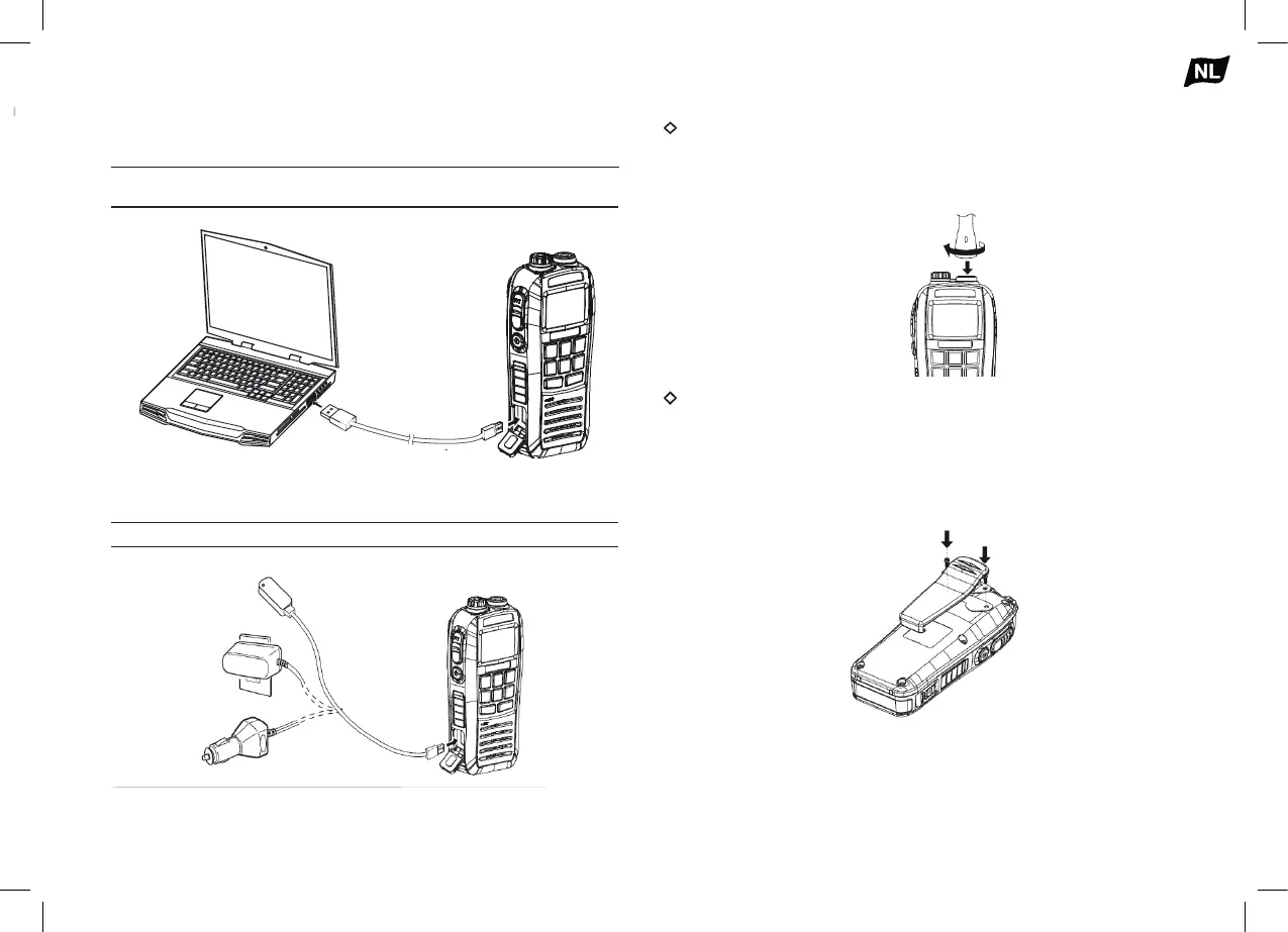 Bevestig de riemclip aan de achterkant van de radio. Let erop dat de
