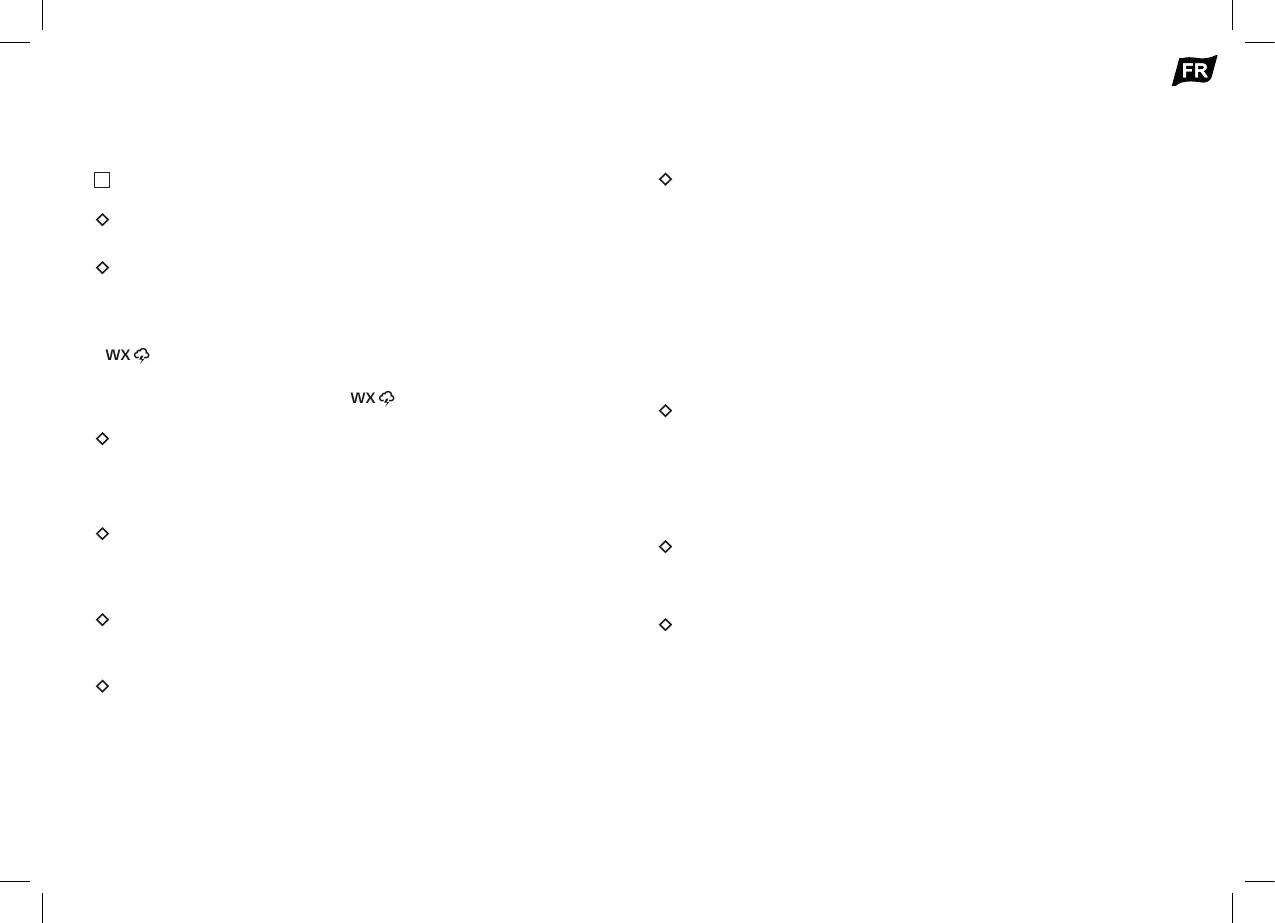 Alerte météo, Scan prioritaire, Minuteur de reprise de scan, Scan automatique,