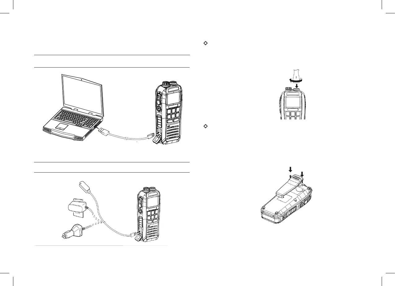 Attachez le clip de ceinture au panneau arrière de la radio. Assurez-vous