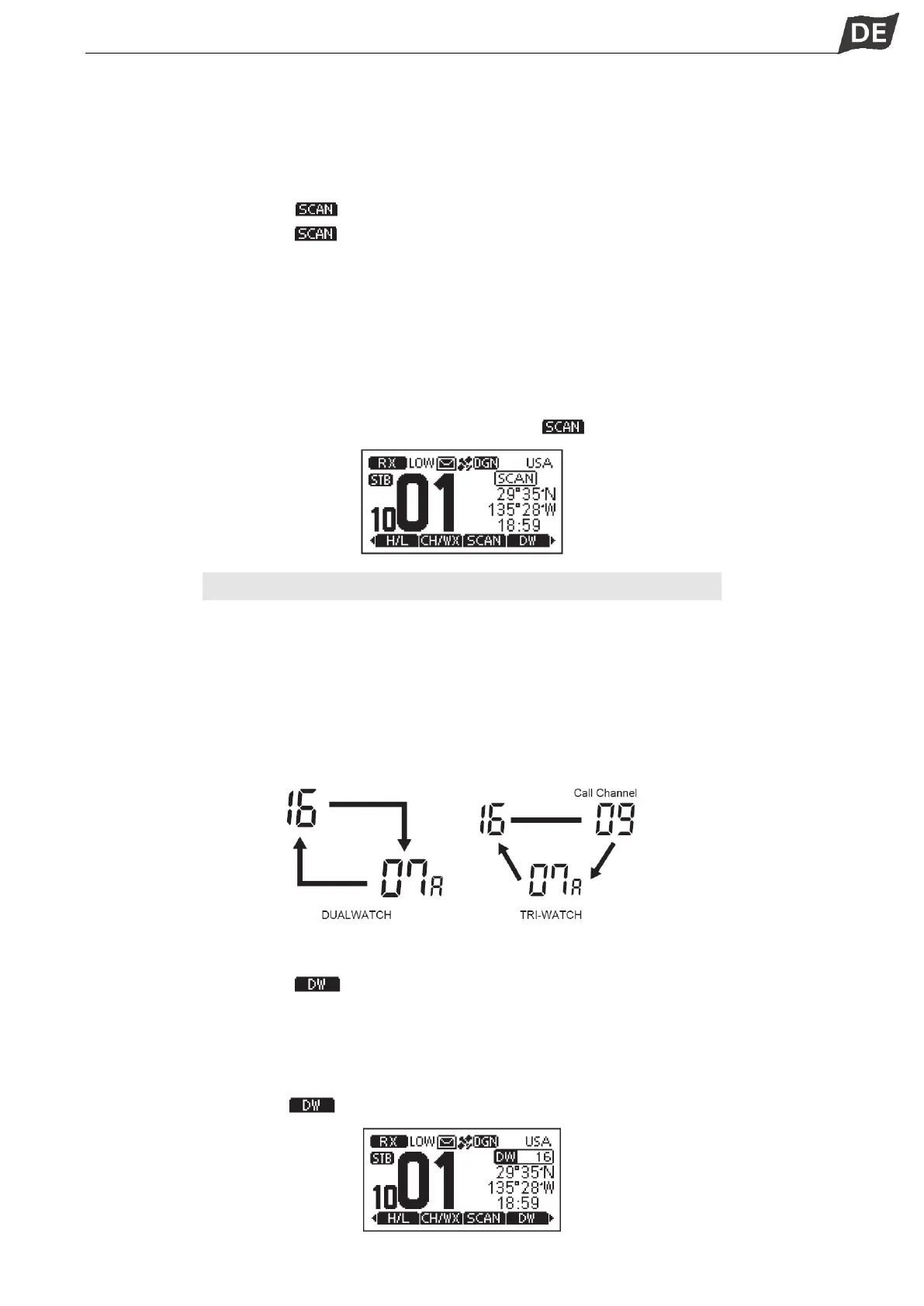 ·Wenn während eines priorisierten Scans ein Signal auf Kanal 16 empfangen wird, ertönt ein