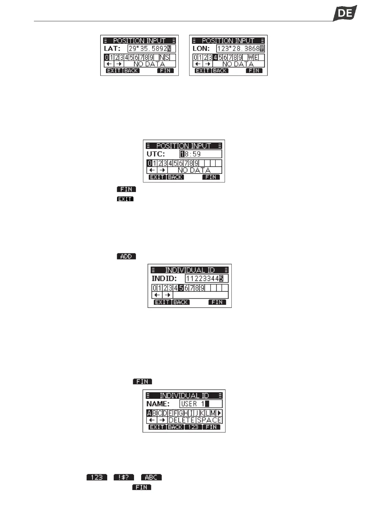 2. Drücken Sie den Softkey [ ]. Der Eingabebildschirm „INDIVIDUAL ID“ wird angezeigt.