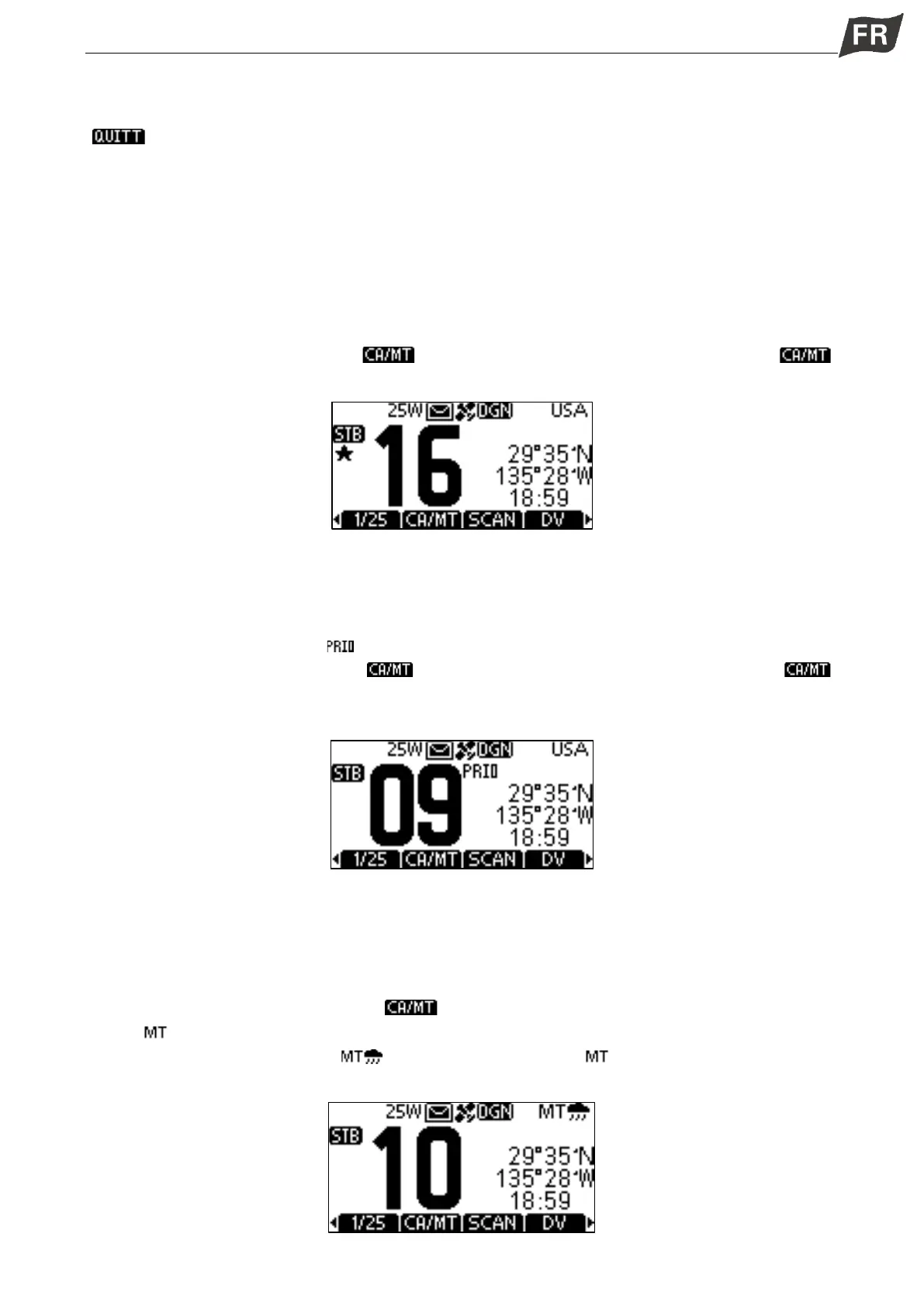 et pour les communications d’urgence. Le canal 16 est surveillé à la fois en double veille et triple veille.