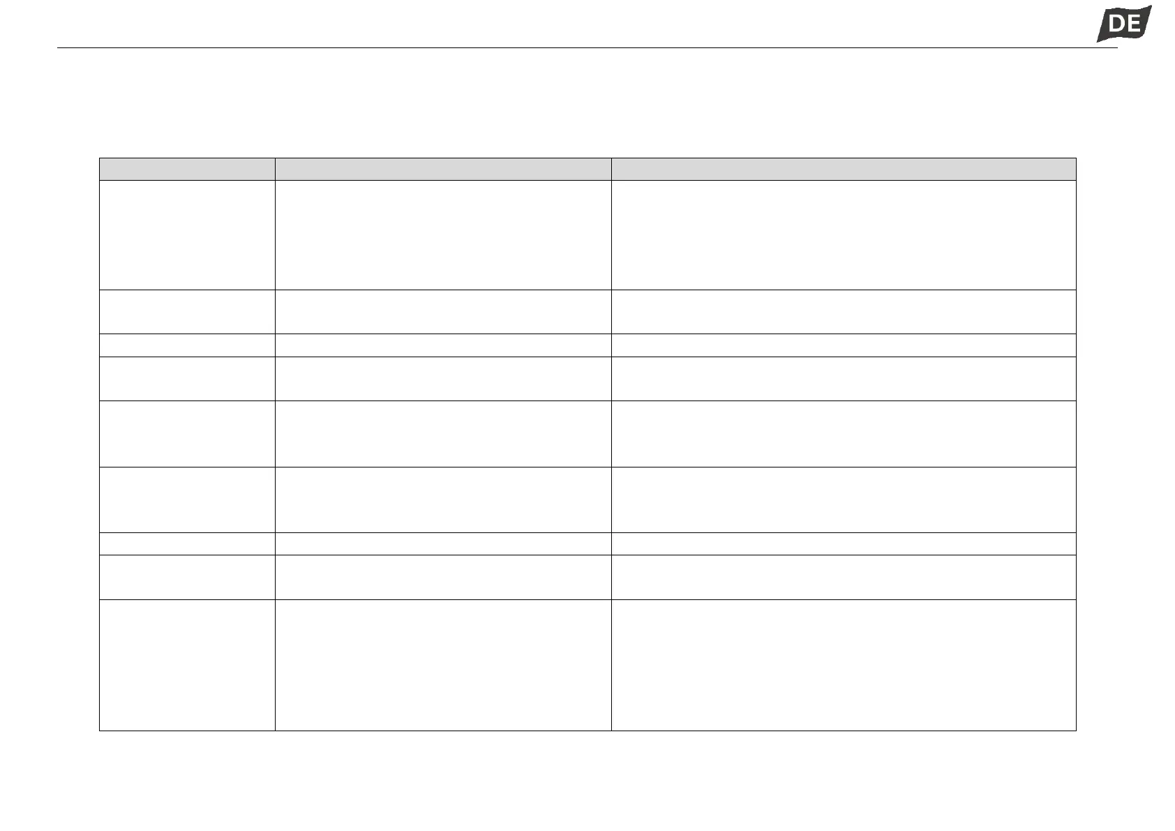 durch Schaltungsfehler verursacht. Bevor Sie eine Fehlfunktion des Funkgeräts vermuten, lesen Sie sich bitte diese Tabellen und die entsprechenden Teile dieser