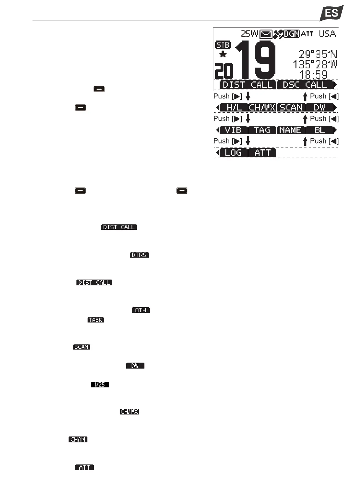 Al pulsar esta tecla se mostrará "DISTRESS" en pantalla, podrá seleccionar la naturaleza de la