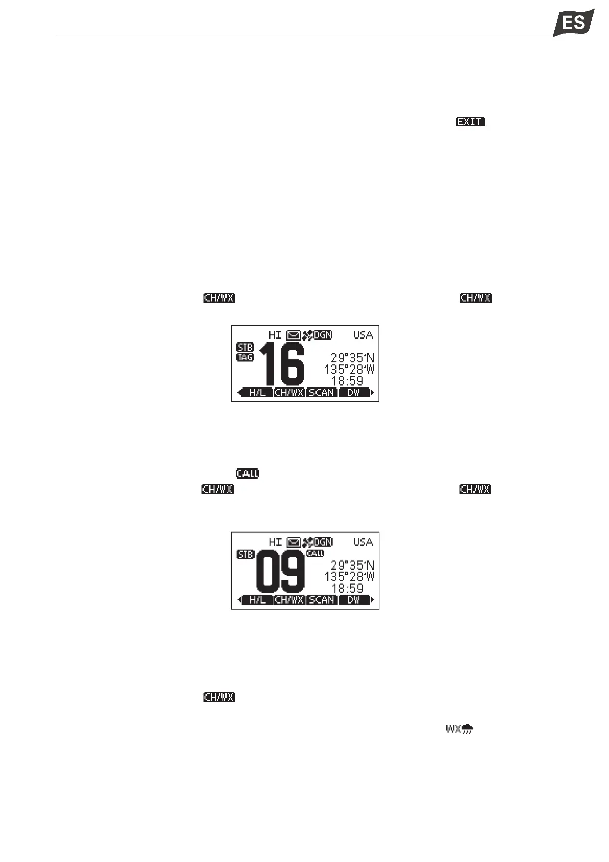 ·Cuando se selecciona un canal meteorológico aparece "WX".