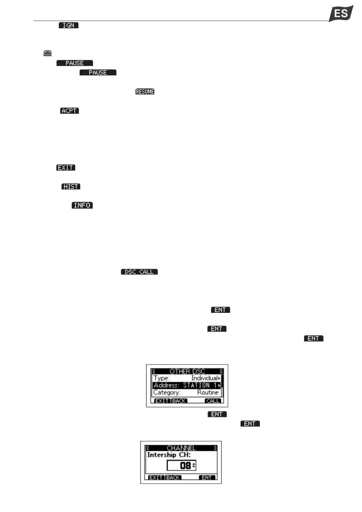 ·Una vez que se ha seleccionado el canal 16, puede seleccionar su siguiente operación pulsando la
