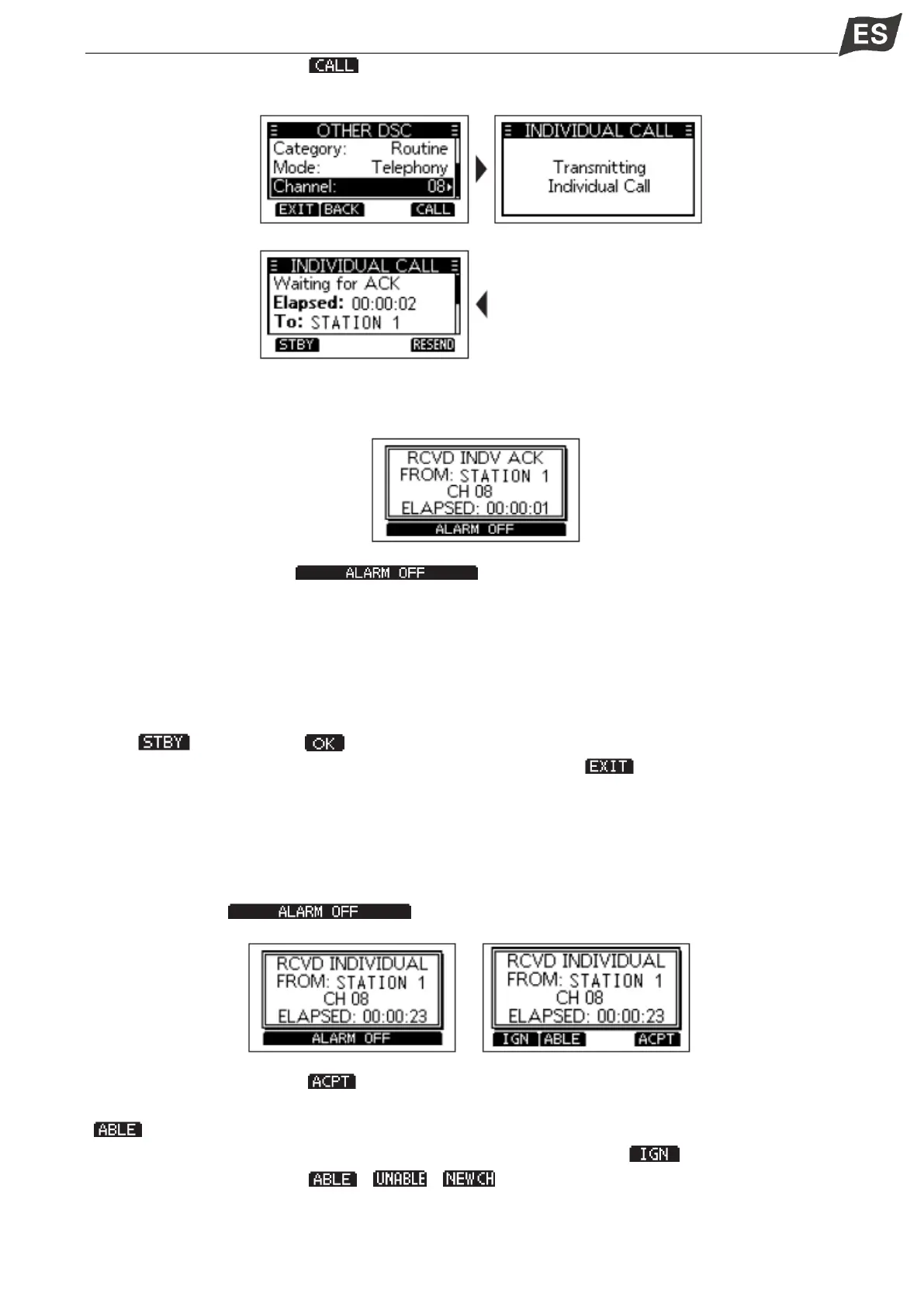 • Se muestra "Transmitting Individual Call", y luego se muestra "Waiting for ACK".