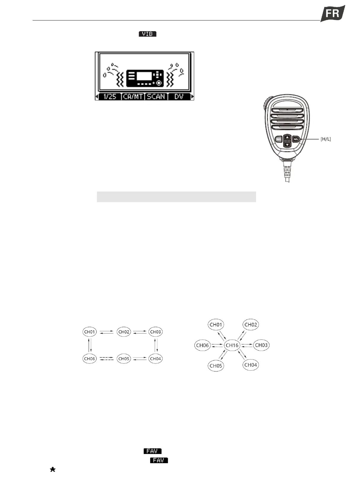 Balayage normal : Le balayage normal recherche dans tous les canaux FAV en séquence. Le canal 16