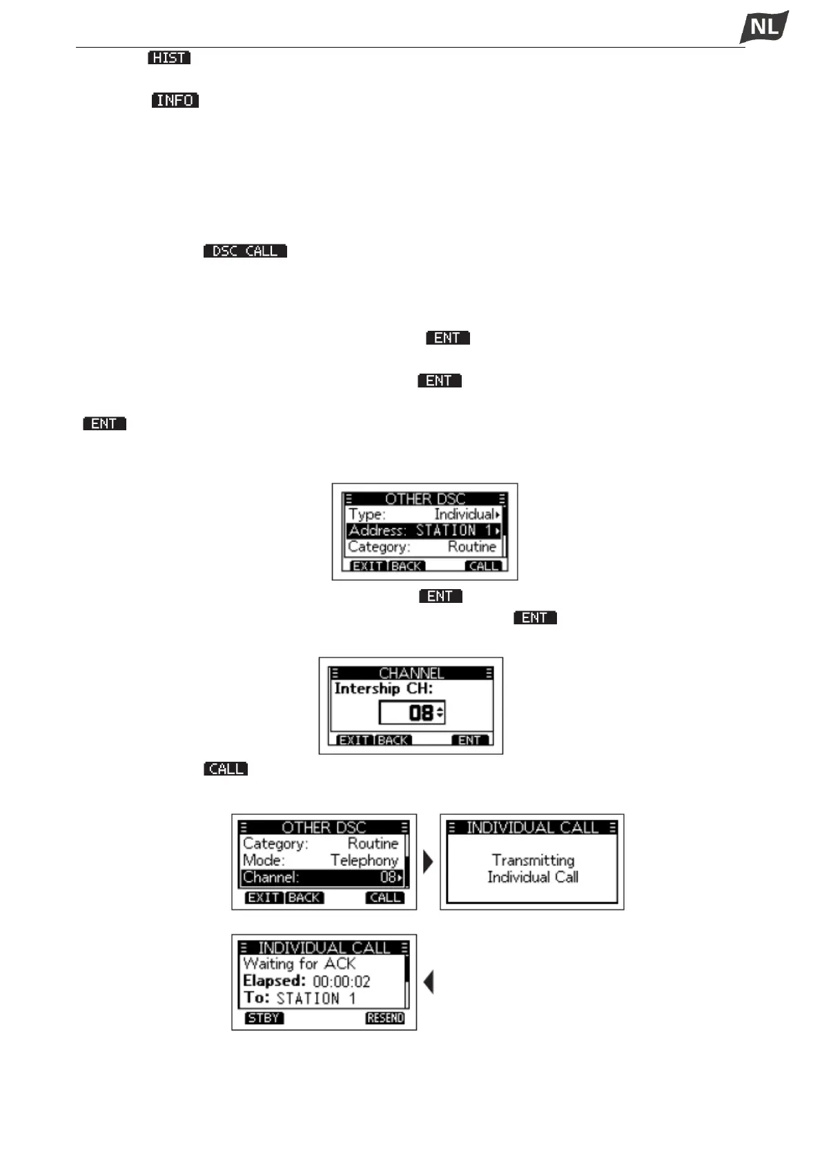 • ‘Transmitting Individual Call’ wordt weergegeven en vervolgens wordt ‘Waiting for ACK’ weergegeven.