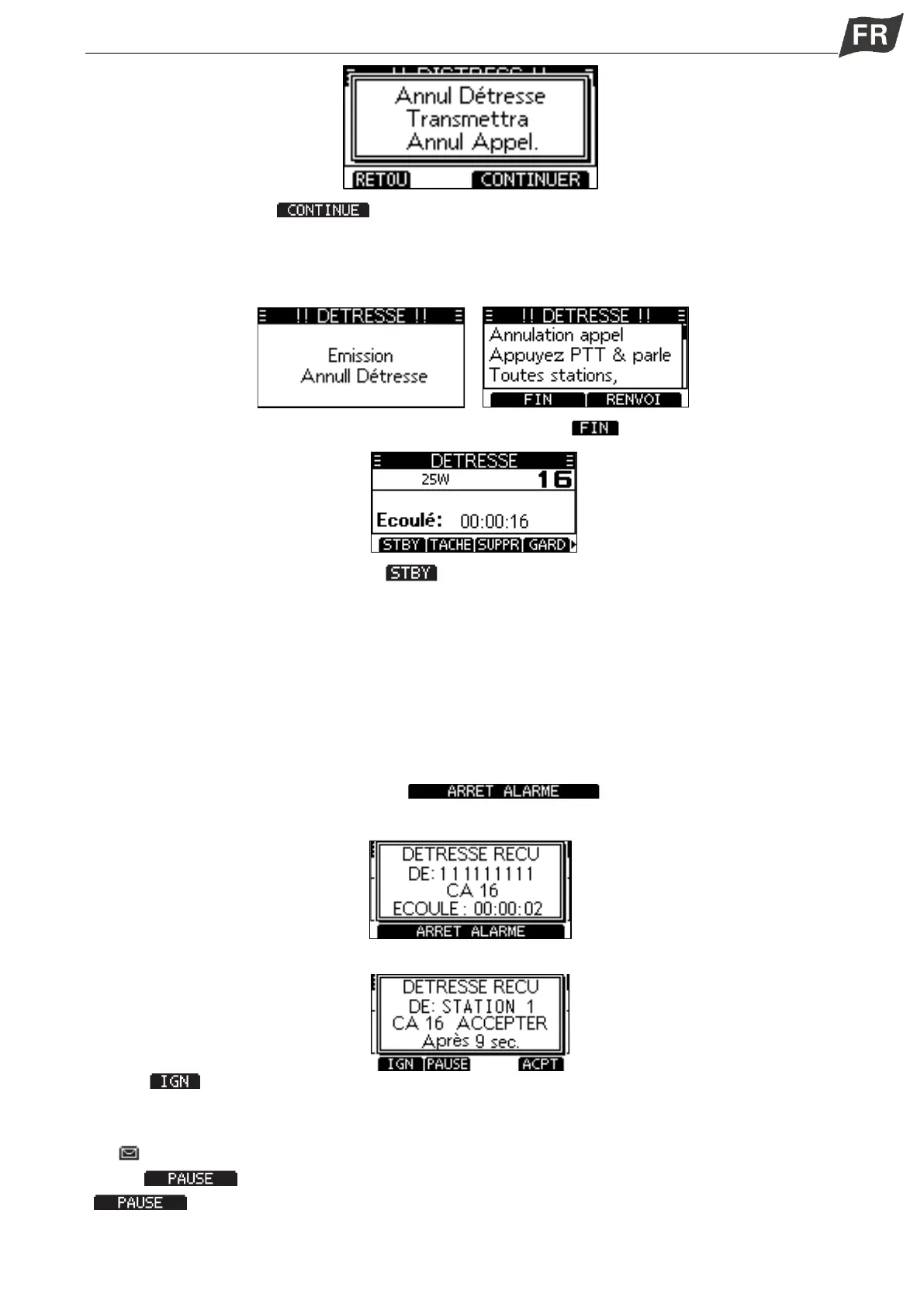 ·« DETRESSE RECU » s’affiche, le rétroéclairage de l’écran clignote.