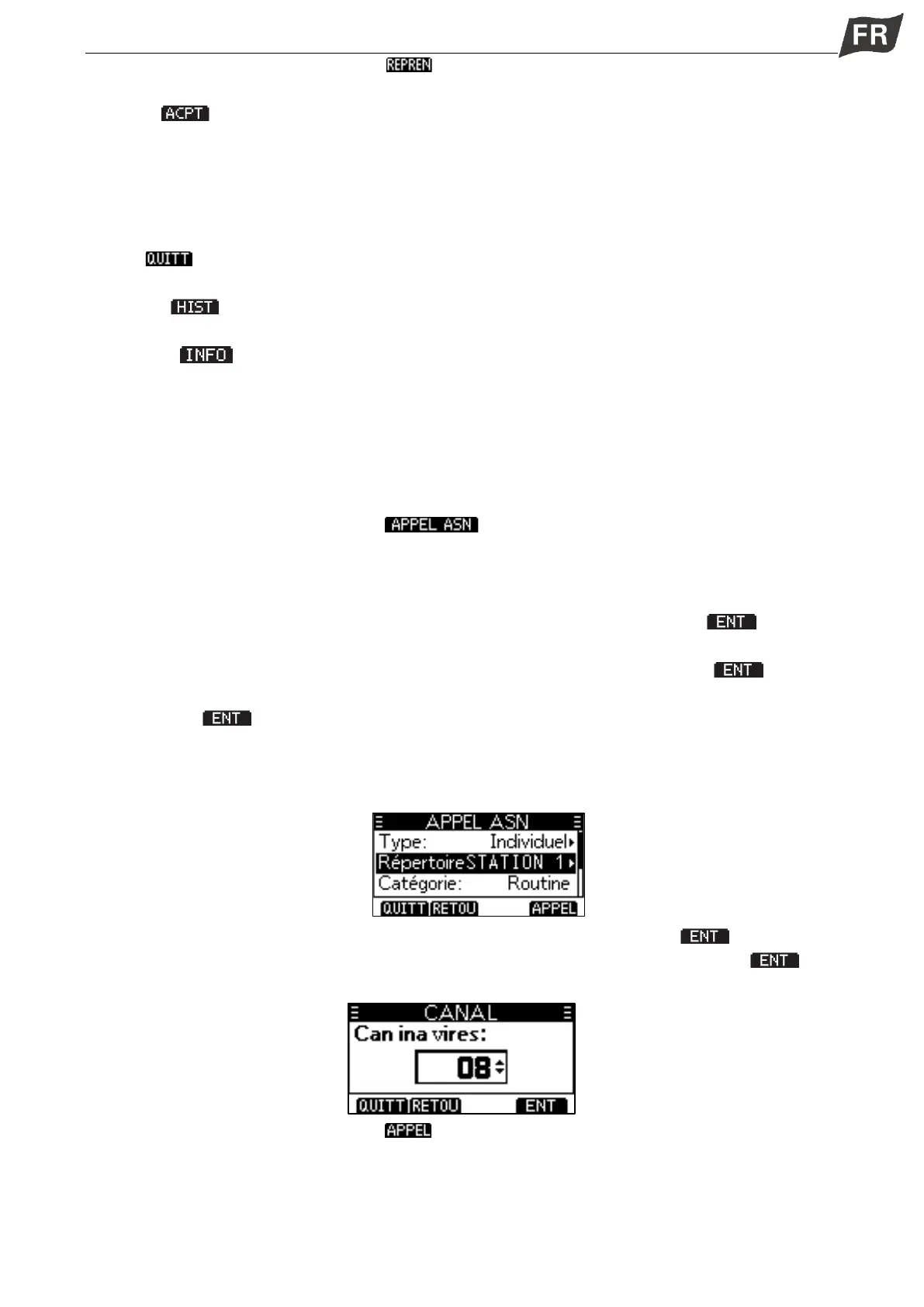 1. Appuyez sur la touche programmable [ ] et l’écran « APPEL ASN » s’affiche.