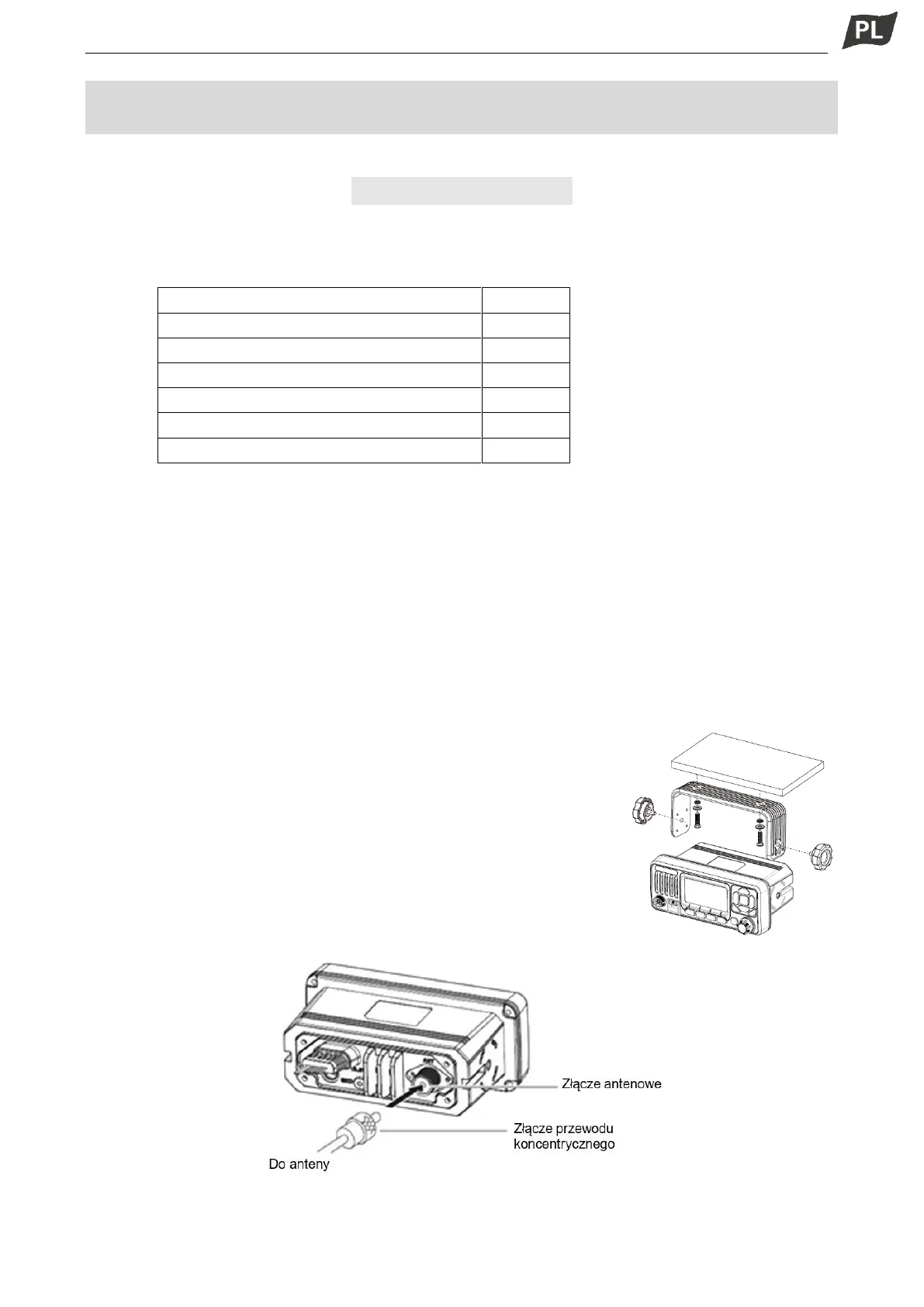 UWAGA: Nie wolno nadawać sygnału przed podłączeniem anteny do