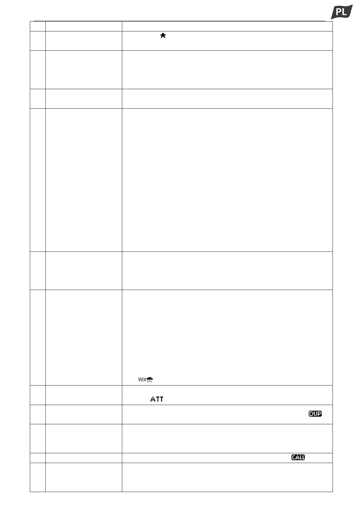 ● Gdy włączona jest funkcja WX-Alert, zamiast symbolu „WX” pojawia