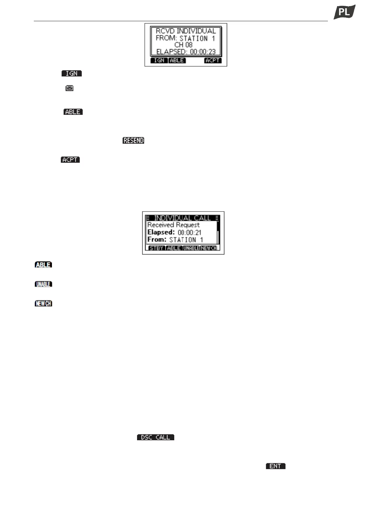 UWAGA: Jeśli funkcja Auto ACK jest ustawiona jako „Auto (Unable)”, po odebraniu wywołania do stacji