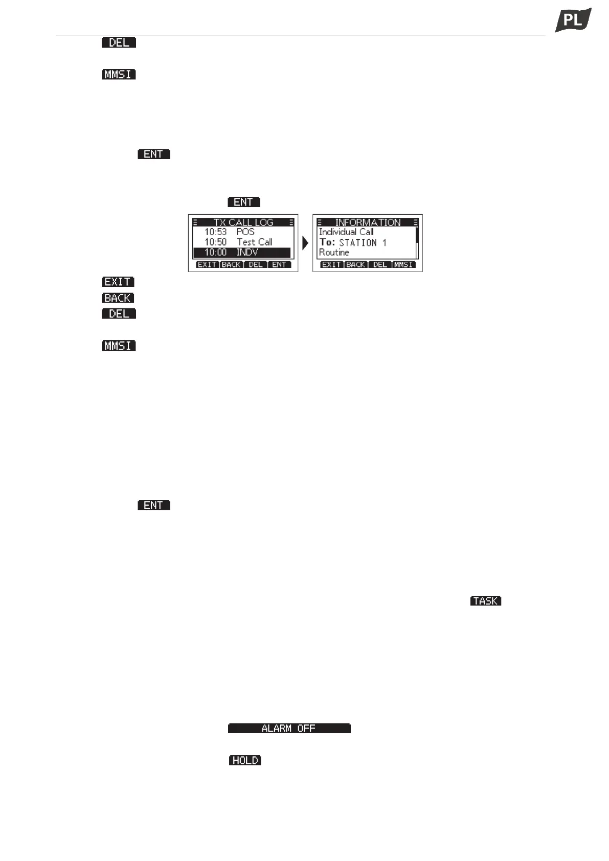 • Wyświetlony zostaje ekran TX CALL LOG.