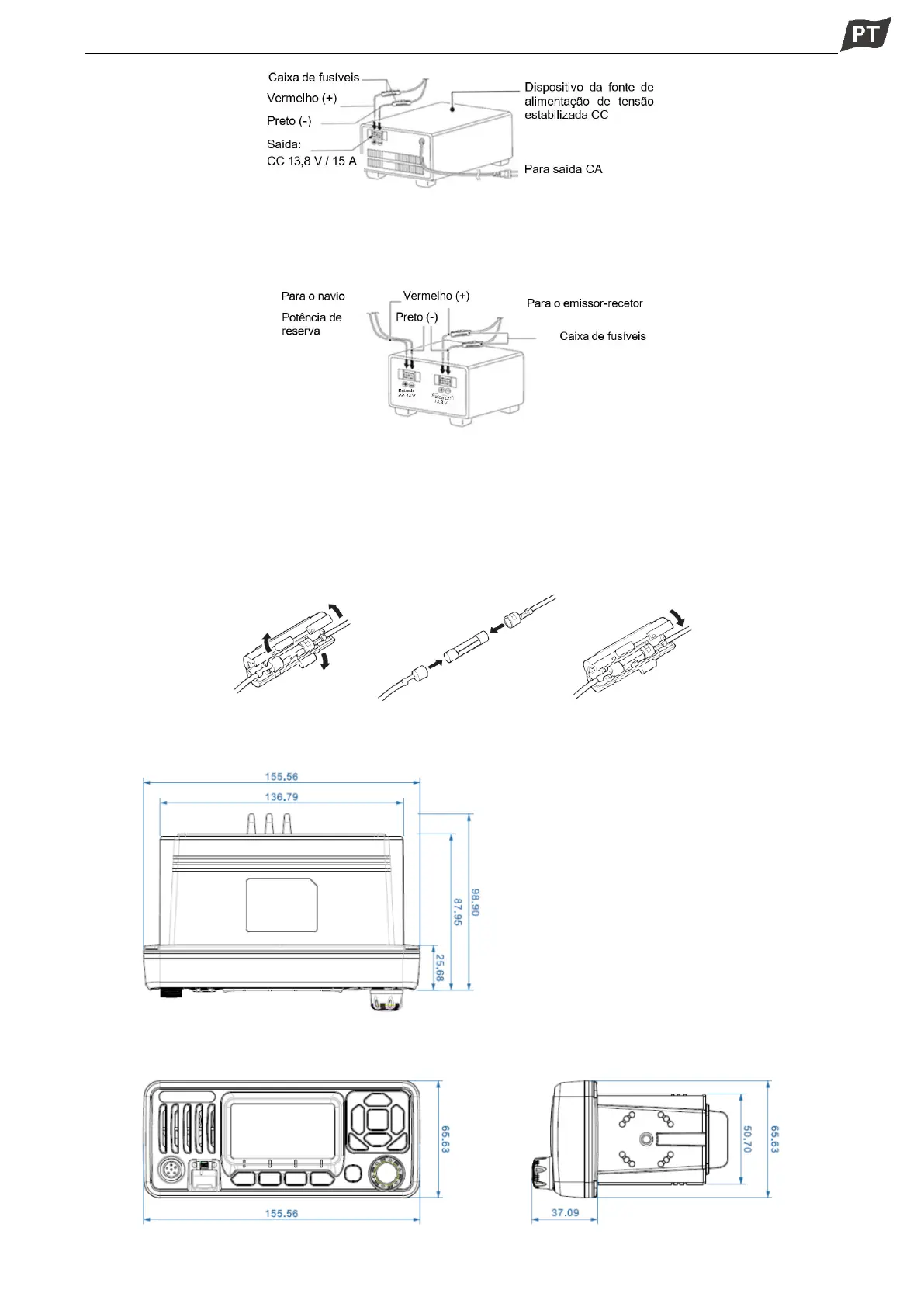 da alimentação elétrica separado (entrada CC de 24 V, saída CC de 13.8 V/15 A).