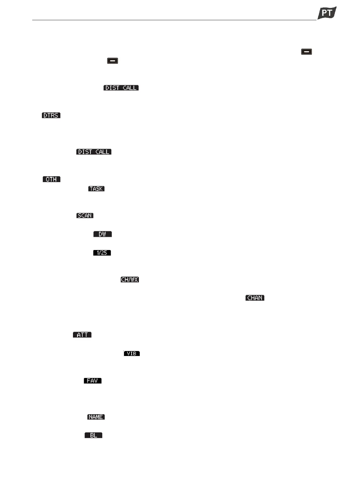 ·Embora o canal de Chamada ou Canal 16 seja exibido, prima esta tecla para voltar ao modo de canal