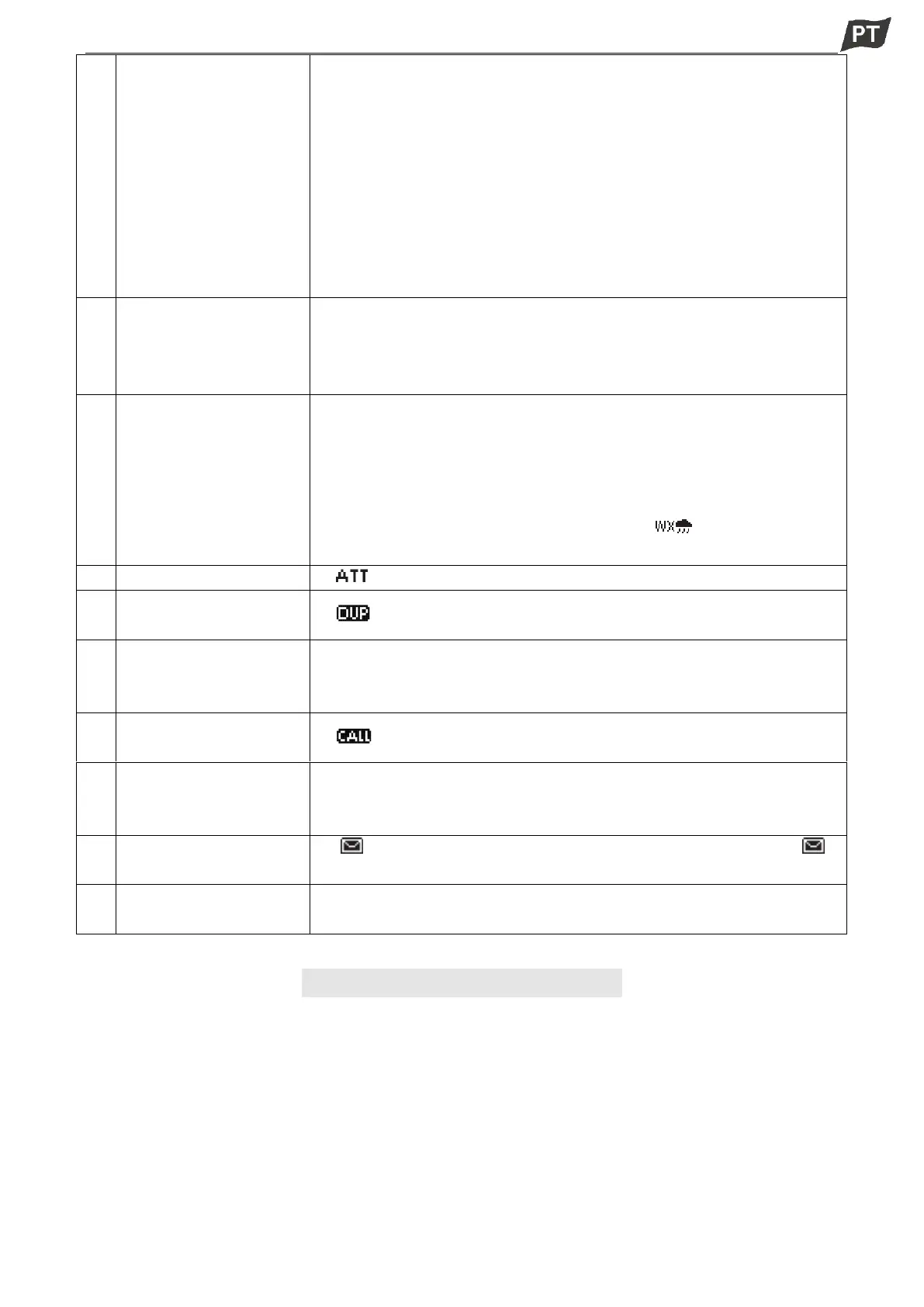 ●" " pisca quando há uma mensagem DSC não lida, " "