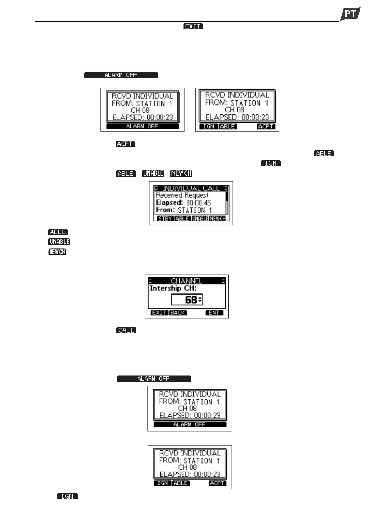 Quando tiver recebido uma chamada Individual, envie uma Confirmação à estação chamadora, selecione