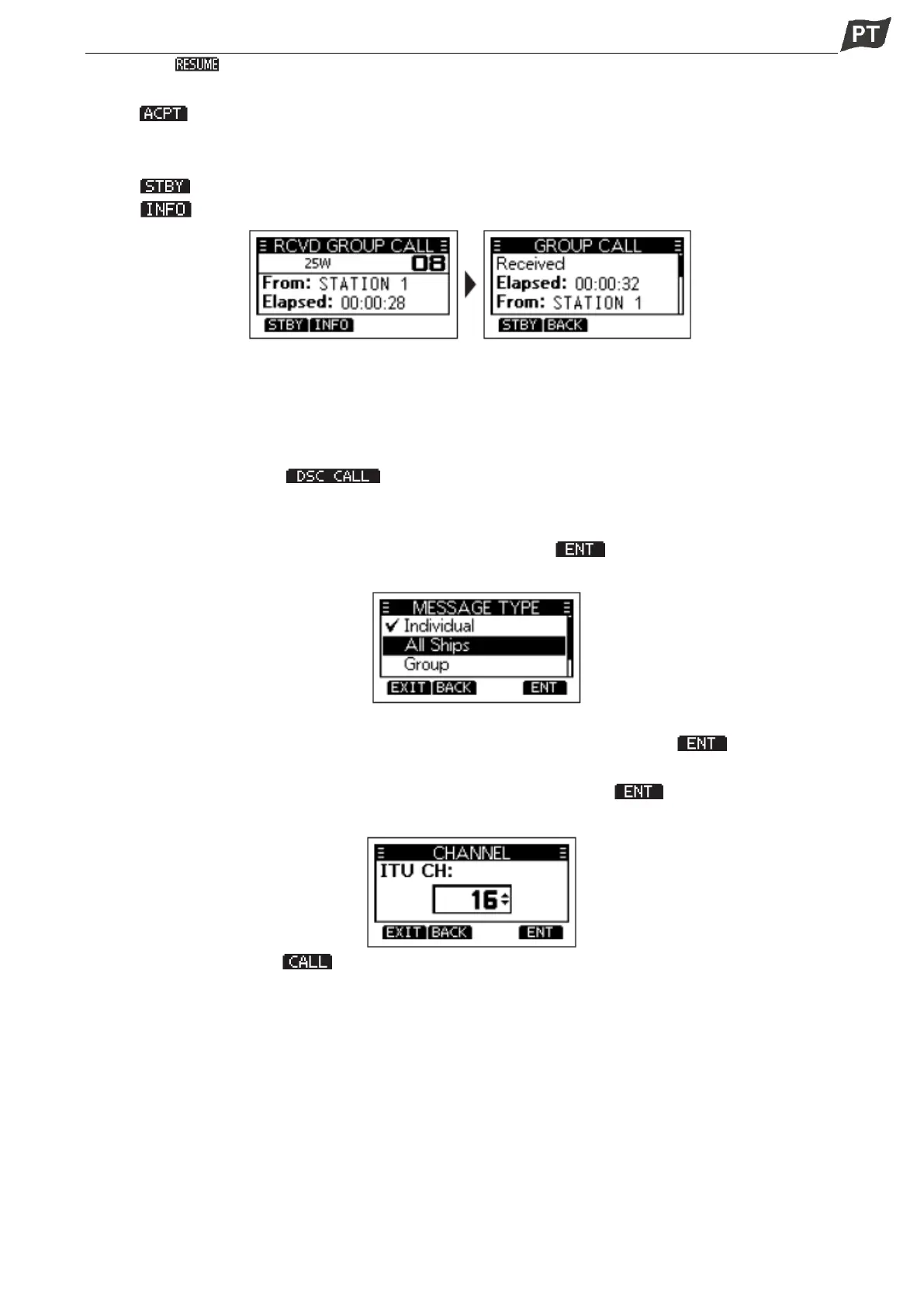 8. Prima a tecla de função [ ] para enviar a chamada para Todos os Navios, "Transmitting All Ships