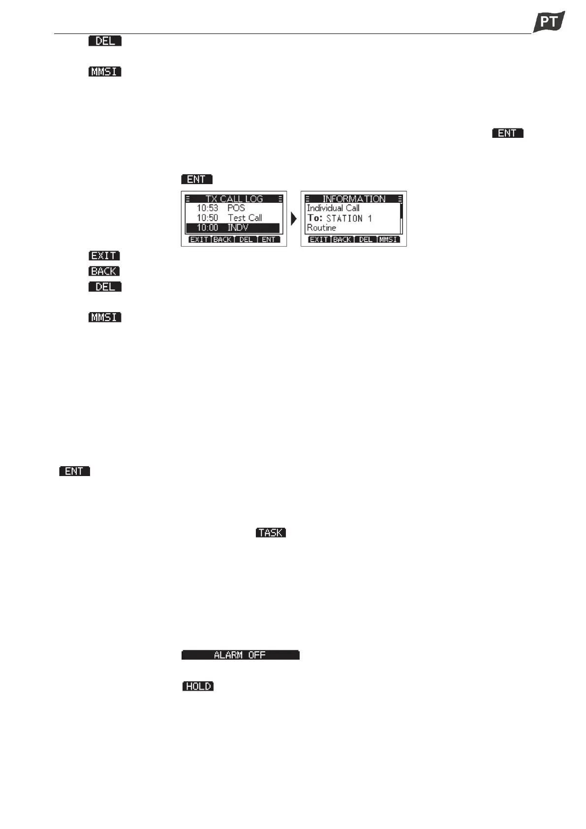 • É exibido o ecrã "TX CALL LOG".