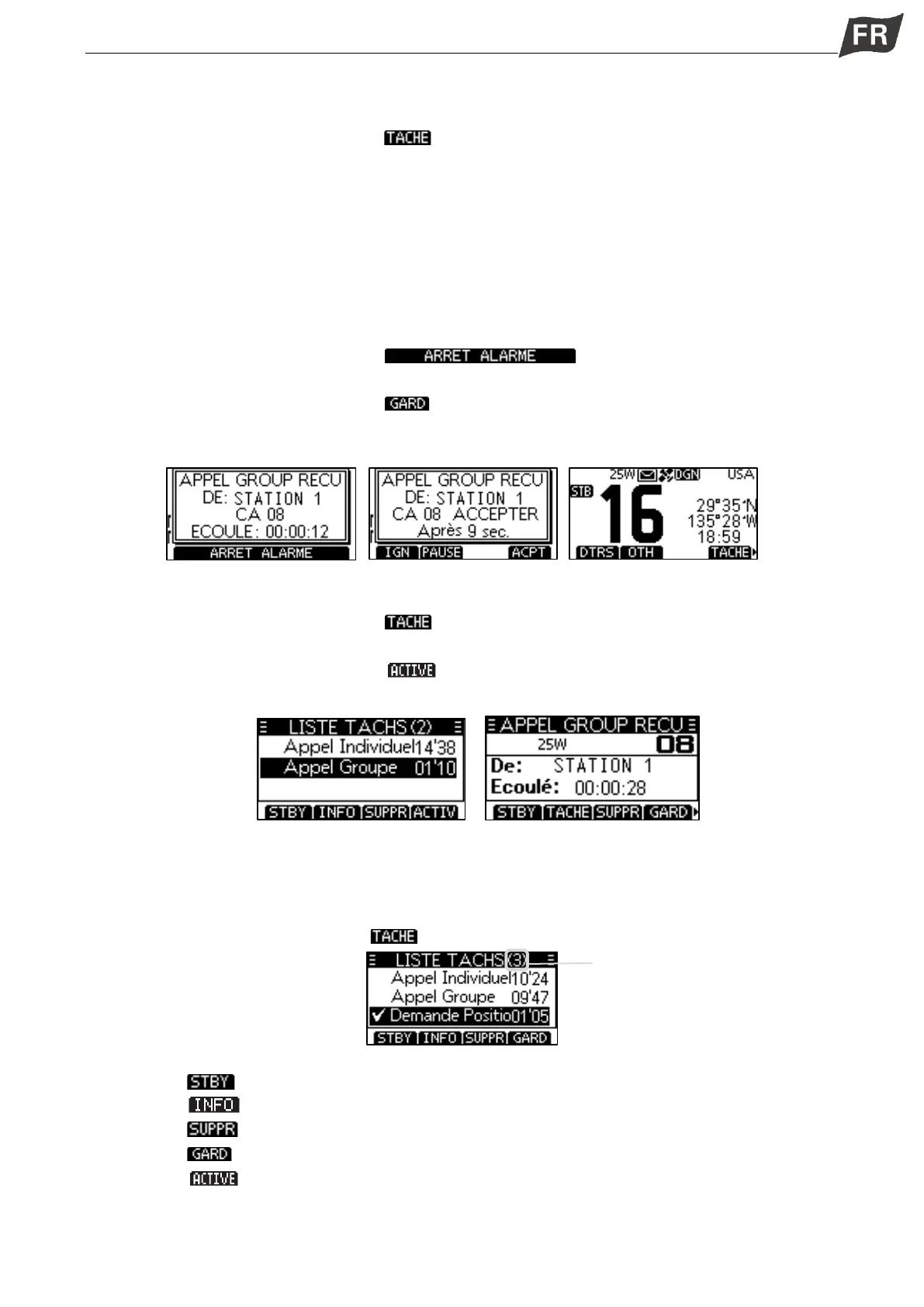 Sur l’écran « LISTE TACHES », les touches programmables suivantes s’affichent.